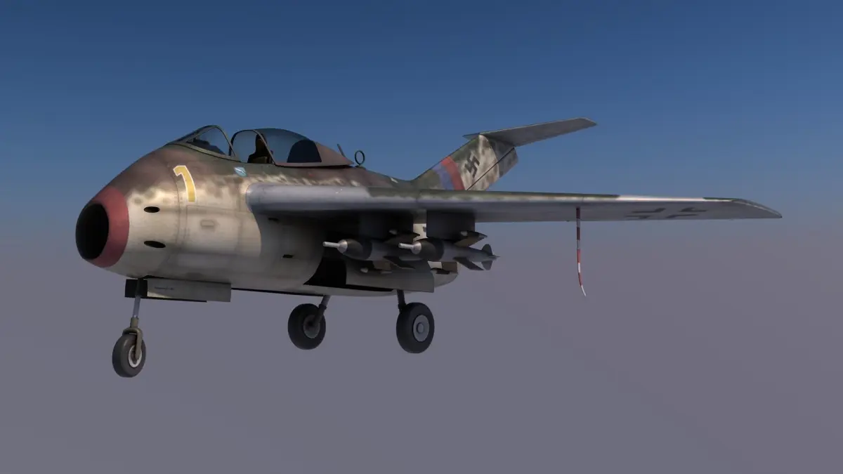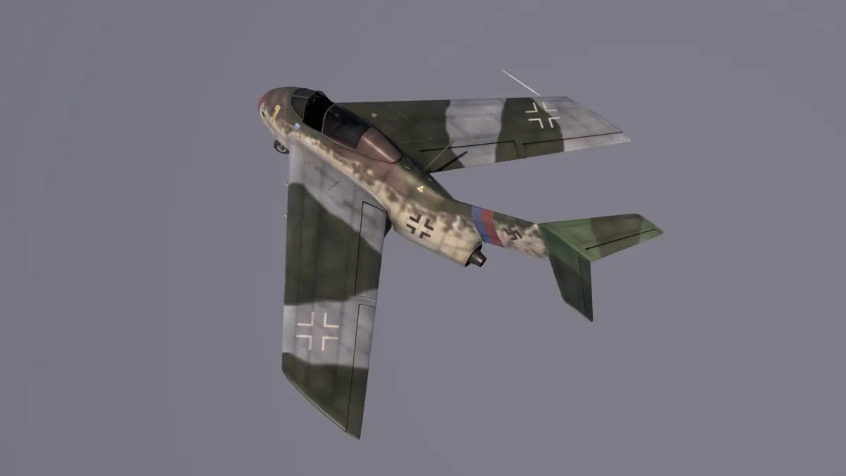 The Focke-Wulf Ta 183 Huckebein was a design for a jet-powered fighter aircraft intended as the successor to the Messerschmitt Me 262 and other day fighters in Luftwaffe service during World War II. It was developed only to the extent of wind tunnel models when the war ended, but the basic design was further developed postwar in Argentina as the FMA IAe 33 Pulqui II. The name Huckebein is a reference to a trouble-making raven (Hans Huckebein der Unglücksrabe) from an illustrated story in 1867 by Wilhelm Busch. Detailed 3D model armed with X4 rockets, separate control surfaces and landing gear.