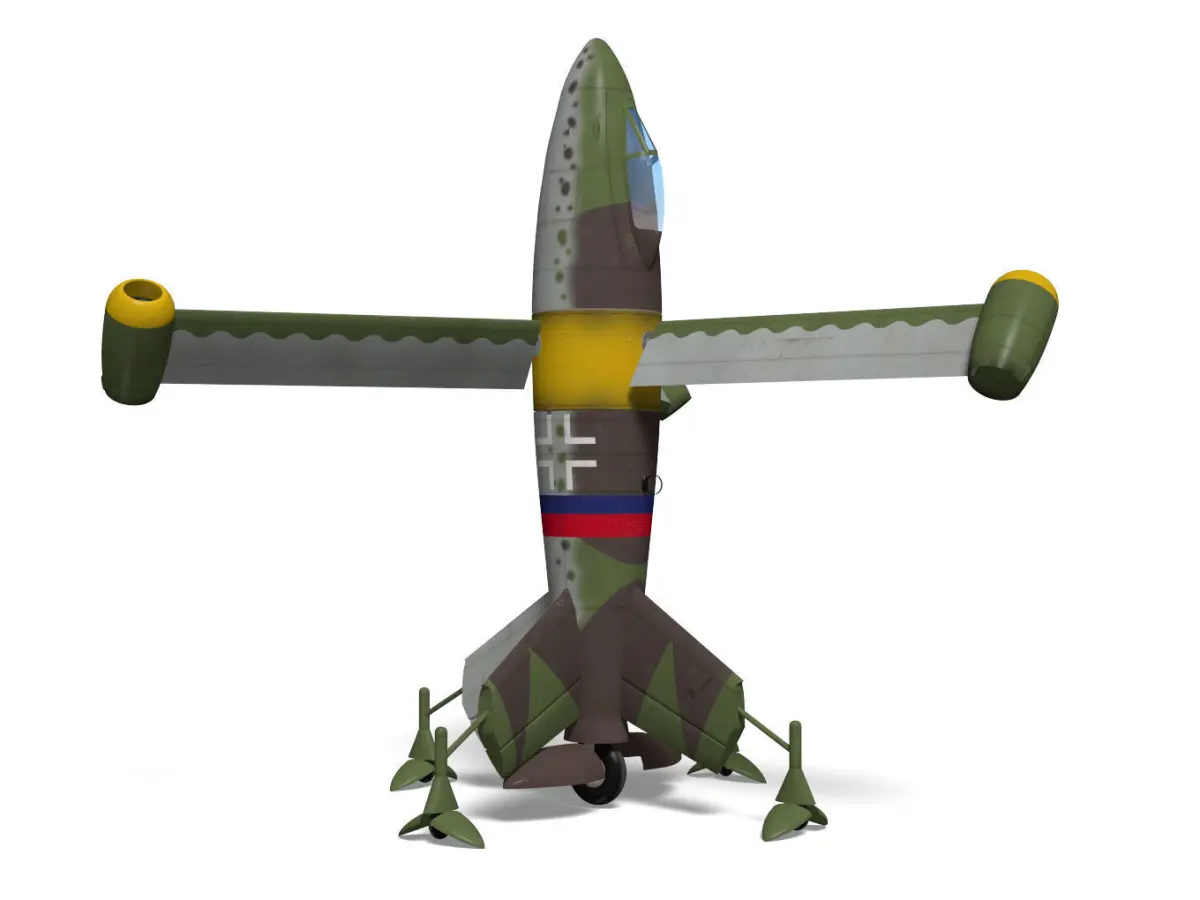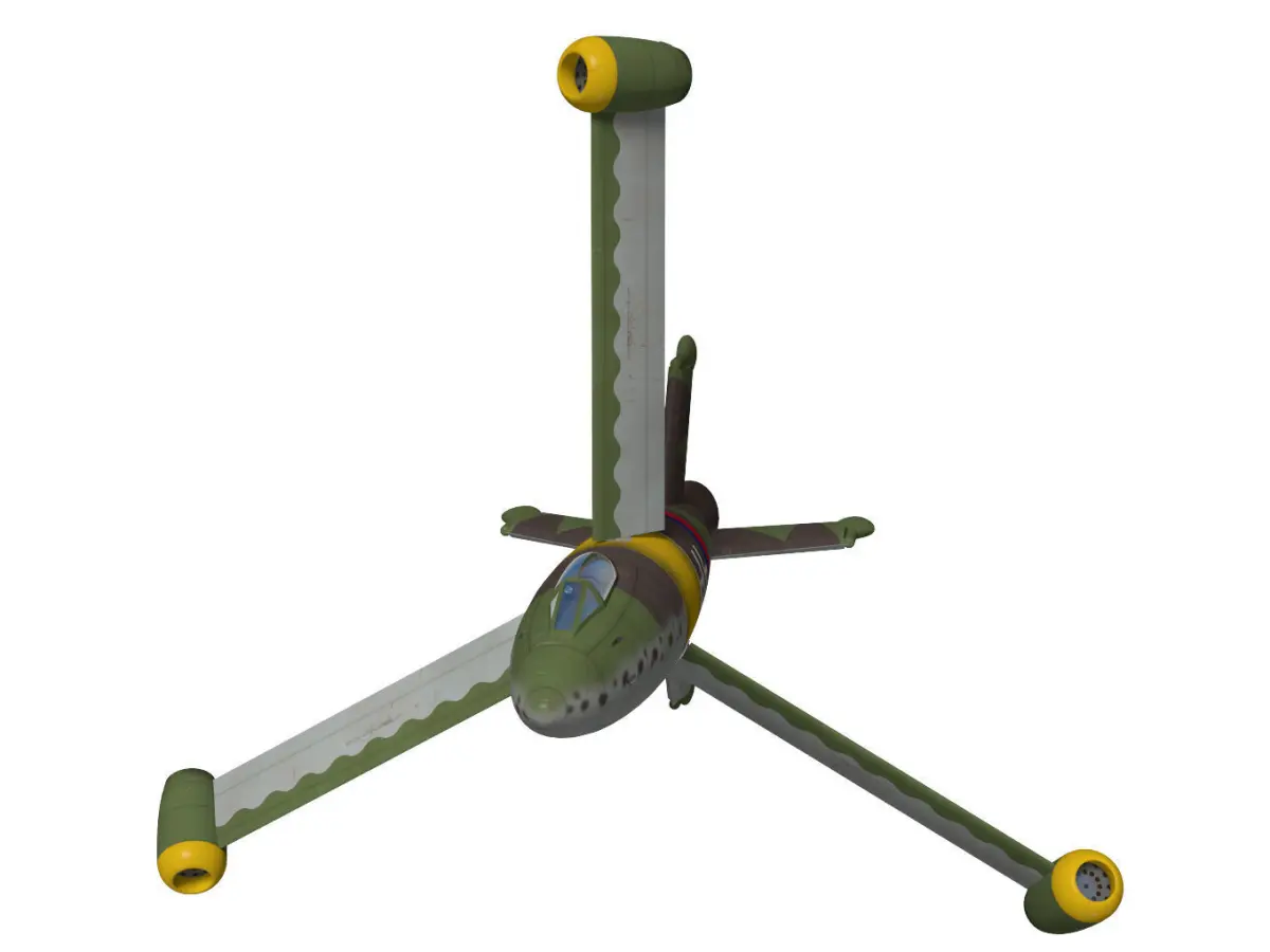 This VTOL jet fighter was planned by Focke-Wulf at the end of WW2.The actual aircraft was never built.The model is put together in a folder with two patterns, one in la flight state and the other in a landing state.