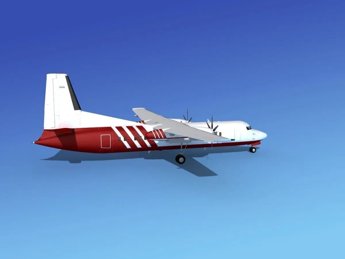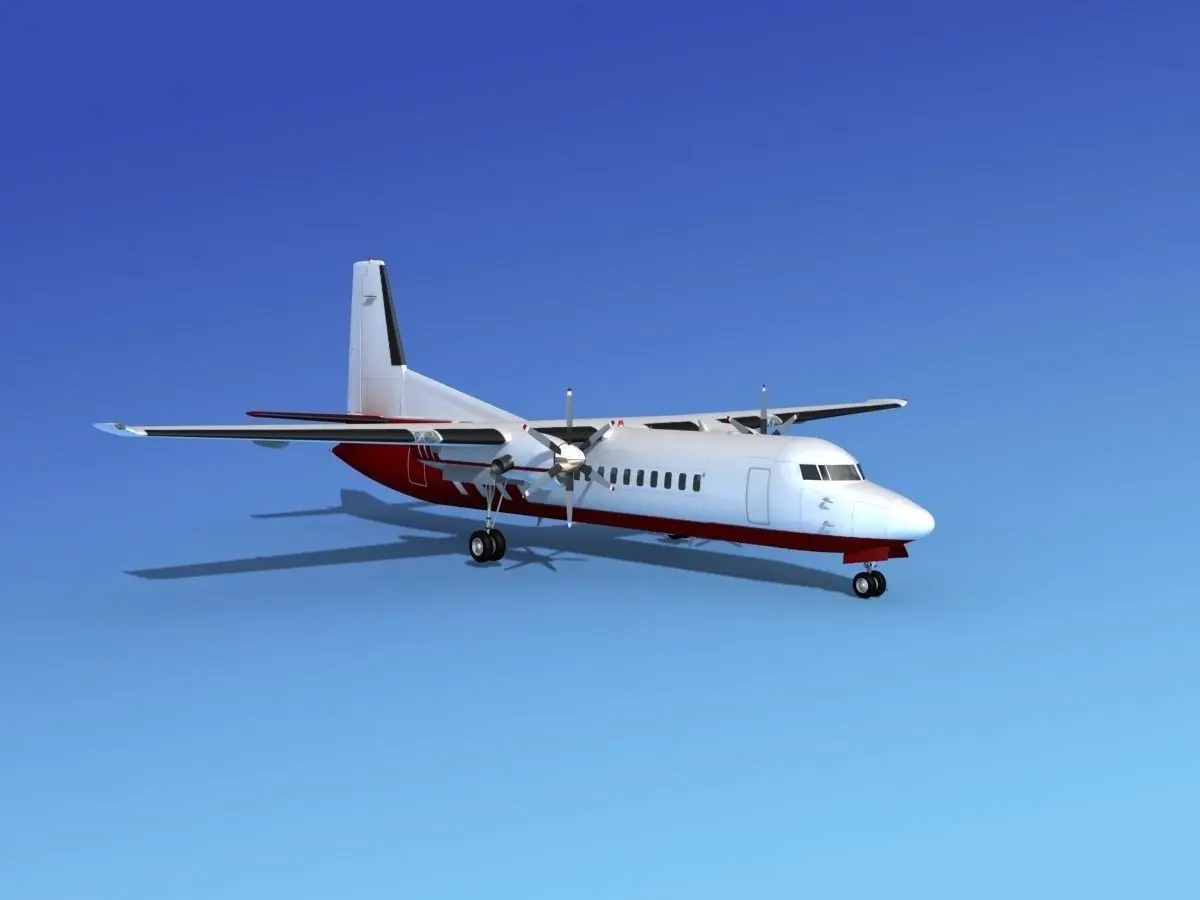 This high quality model is built near to scale with lots or detail. The model is fully textured and comes with all textures and materials as shown. There are many animateable features such as props, ailerons, flaps, elevators, rudder, landing gear retract and landing gear doors close and open. The model also has plenty of detail in the aerodynamics and radio antenna, pitot tubes and other features. This model is available in several different formats. The Fokker 50 is a turboprop-powered airliner, designed as a refinement of and successor to the highly successful Fokker F27 Friendship. It has better avionics, aerodynamic improvements and more payload capacity. The aircraft was in production until Fokker was liquidated in the late 1990s. Over 200 were built. Dozens are still in service around the world.
