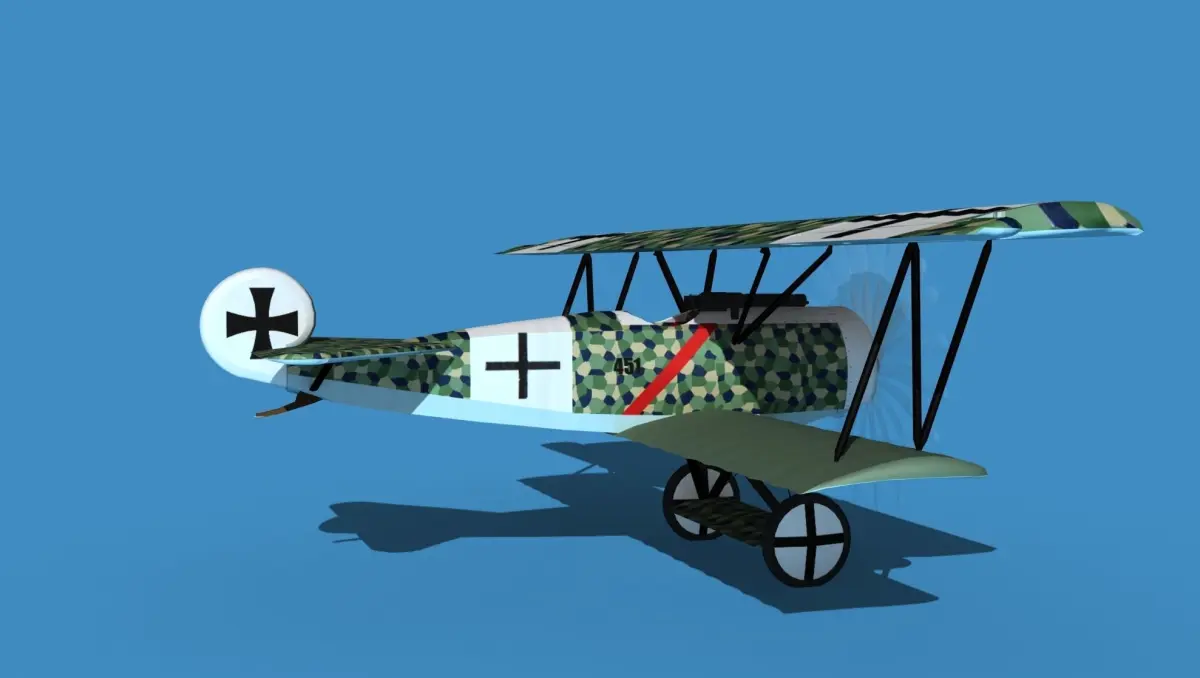 Built in 1917 and 1918 in limited numbers, the Fokker DVI was a fighter biplane used in World War I by Germany and Austro Hungarian Services. Three prototype variants were built and tested and the V13 type variant was selected using a 145 hp rotary engine.