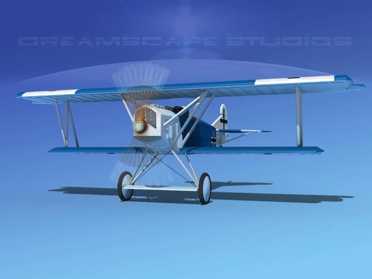 This model has a lot of detail on the outside and in the cockpit. It comes fully textured and built near to scale. It has many animateable features including landing gear (wheels) rudder, ailerons, some controls in the cockpit and the propeller. This model includes the top end detail of the Mercedes engine.