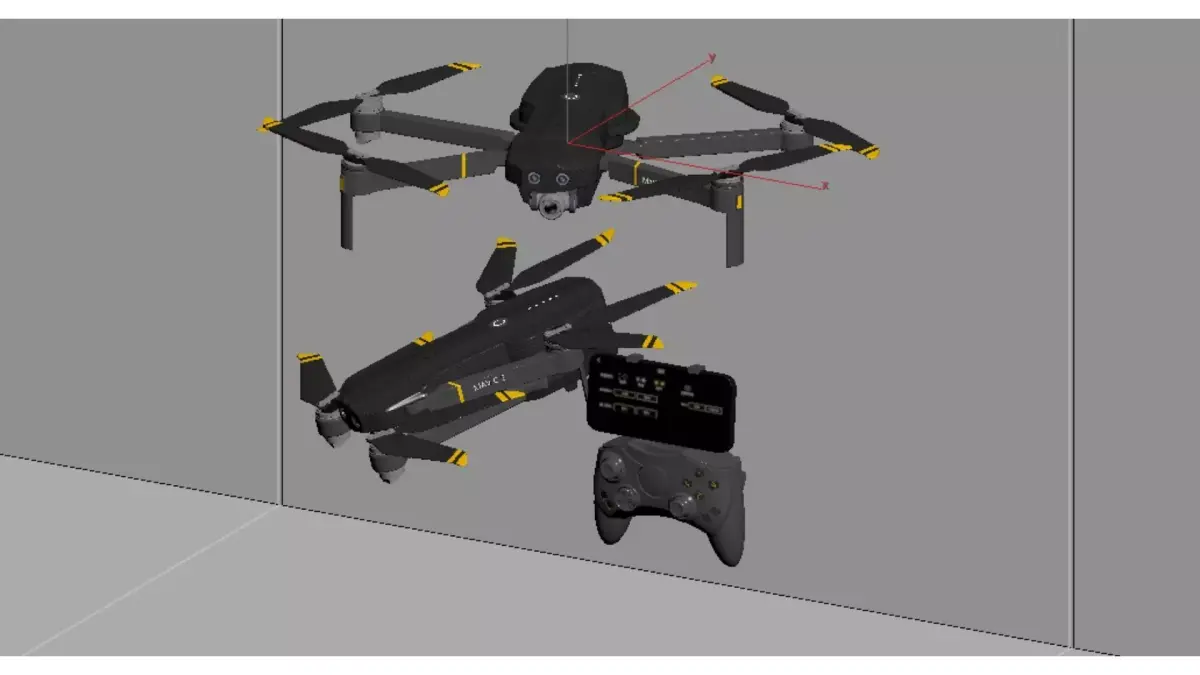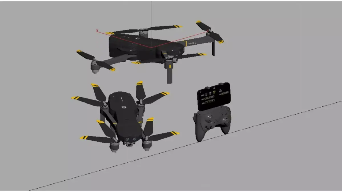 Mavic 2 Series Folding Aerial Drone and Its Remote Control Set, Belonging to Professional Consumer Aerial Equipment:Equipment body: Mavic 2 drone adopts a color scheme of dark gray and yellow accents, with a carbon fiber texture on the body, supports arm folding (shown in the picture in two states of unfolding/folding), is equipped with a high-definition camera, and has professional aerial photography, obstacle avoidance and other functions.Supporting equipment: On the right side is a dedicated remote control that can be connected to a mobile phone to display flight parameters and real-time images. The layout of the operation buttons is adapted to aerial photography scenes, and it belongs to the complete control set of drone+remote control.Positioning and Scene: It is one of the mainstream models for consumer grade aerial photography, featuring portable folding+professional image quality, suitable for travel aerial photography, image creation, outdoor recording and other scenes, balancing portability and professional performance.1:This file has no type of protection. You can reuse scenes, rendering settings, lighting, and materials to evoke the design meaning and imagination of this project, making the future a reality.2: Thank you for your feedback. Please give me more guidance