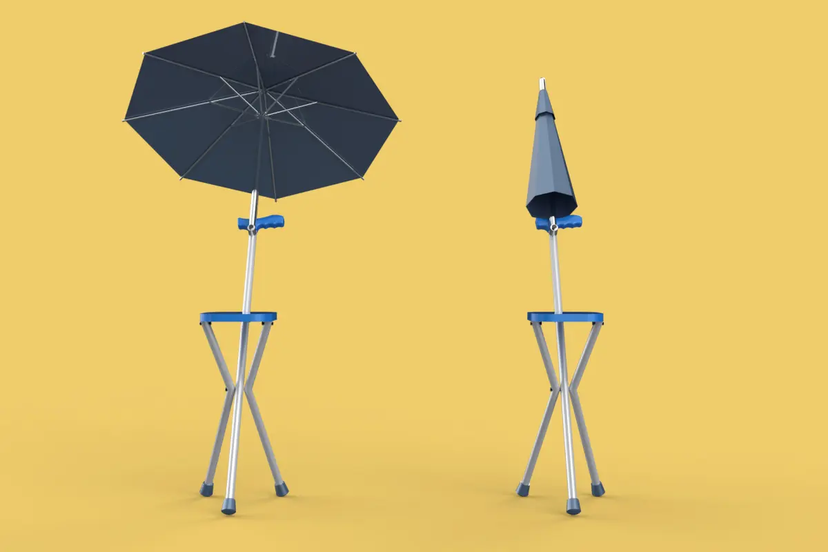 Sincerely Your, SURF3DMORE INFORMATION ABOUT 3D MODELS :Folding Chair Umbrella that transforms into a Walking Cane/Pole/Stick with Seat Stool Canopy: