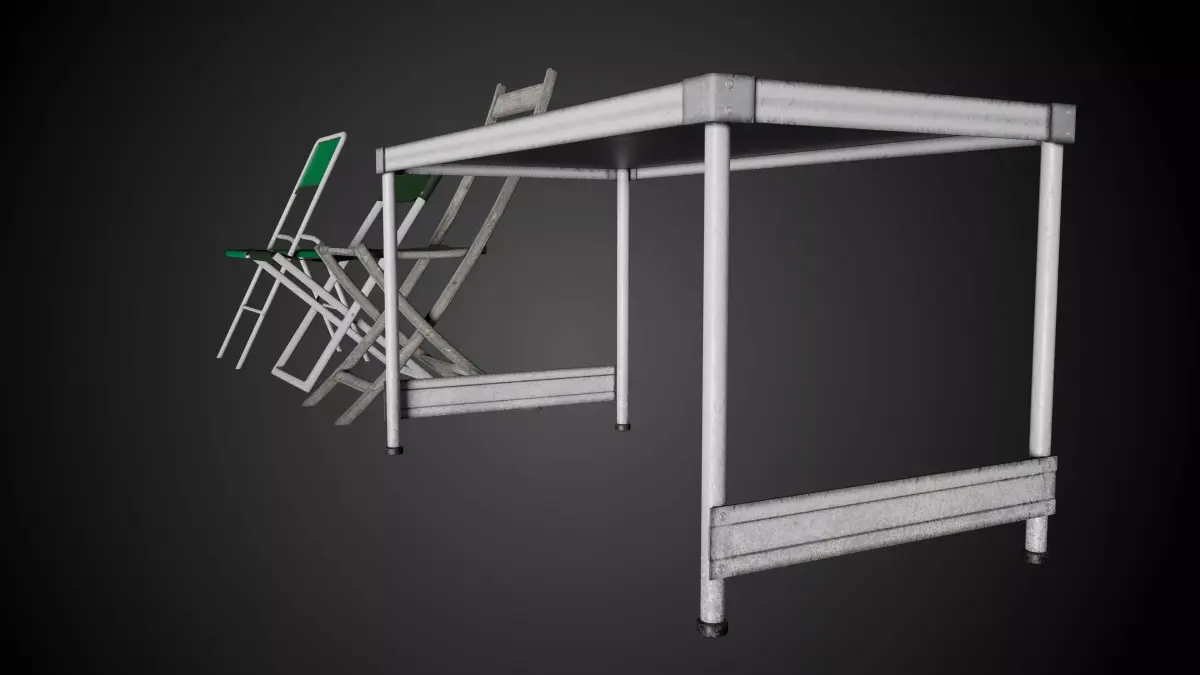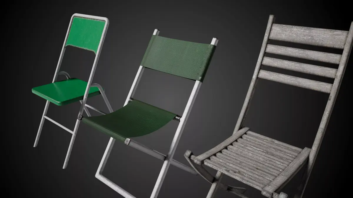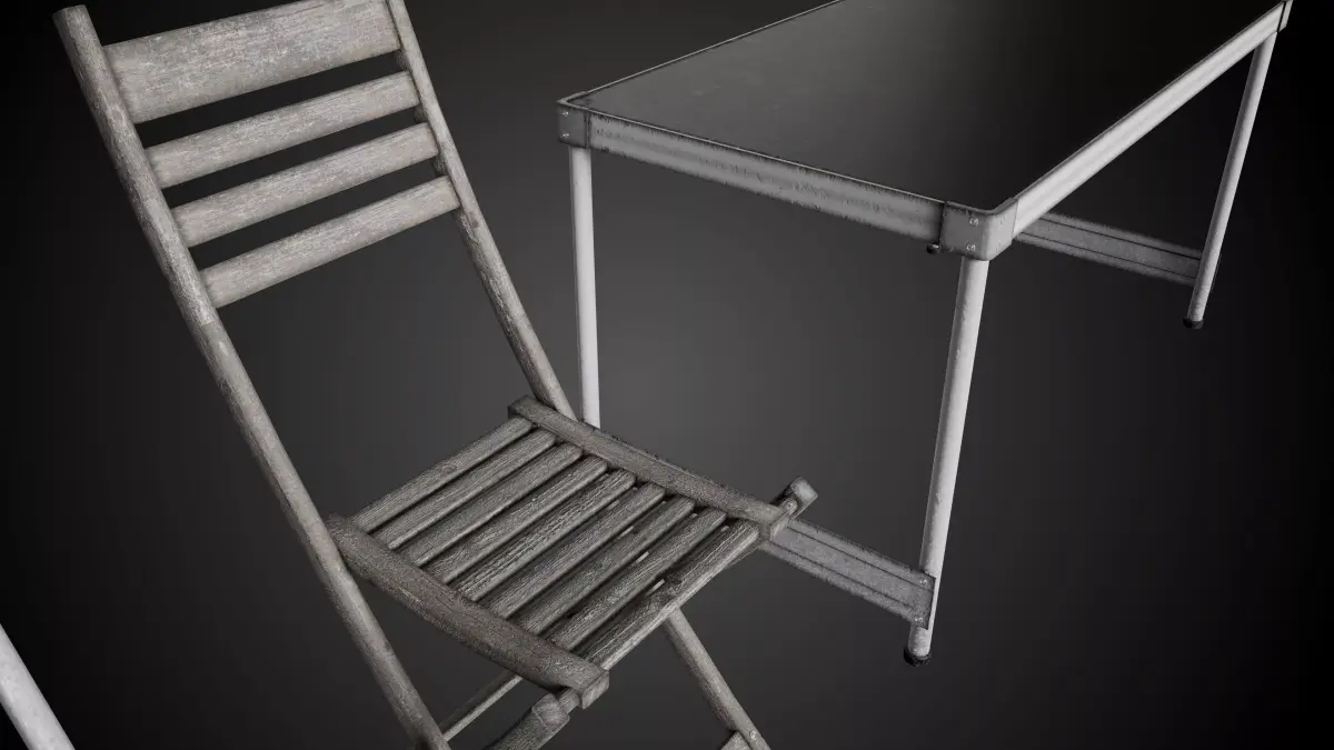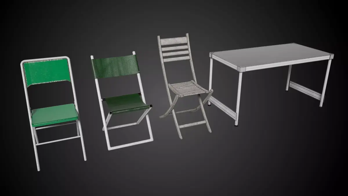 Detailed models of folding chairs and table