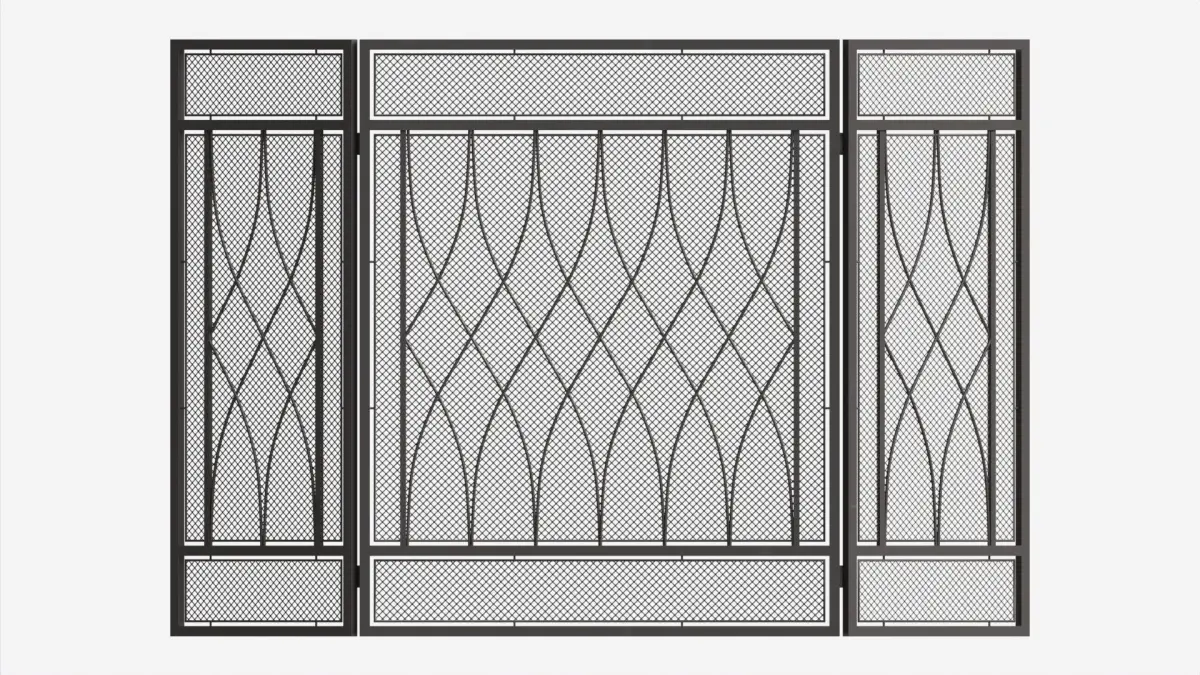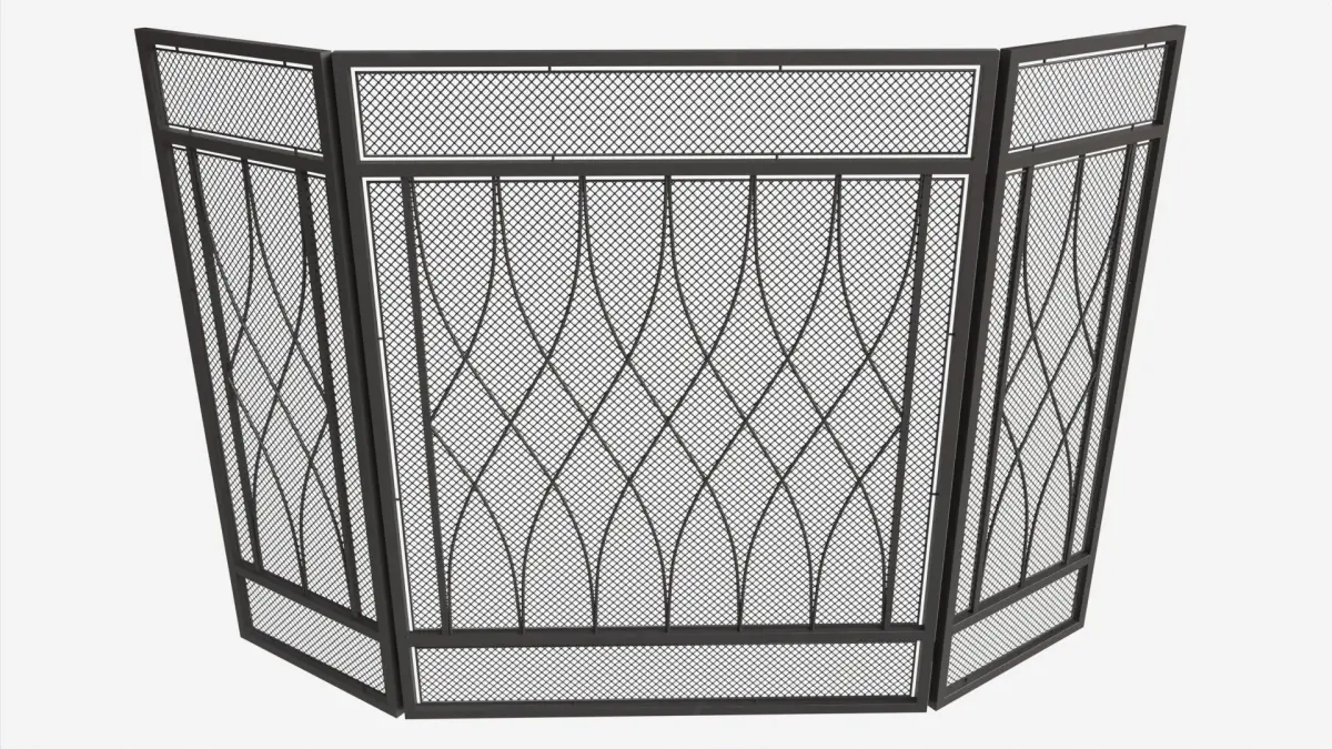 Folding Fireplace Screen 3-Panel Metal Mesh 3D model