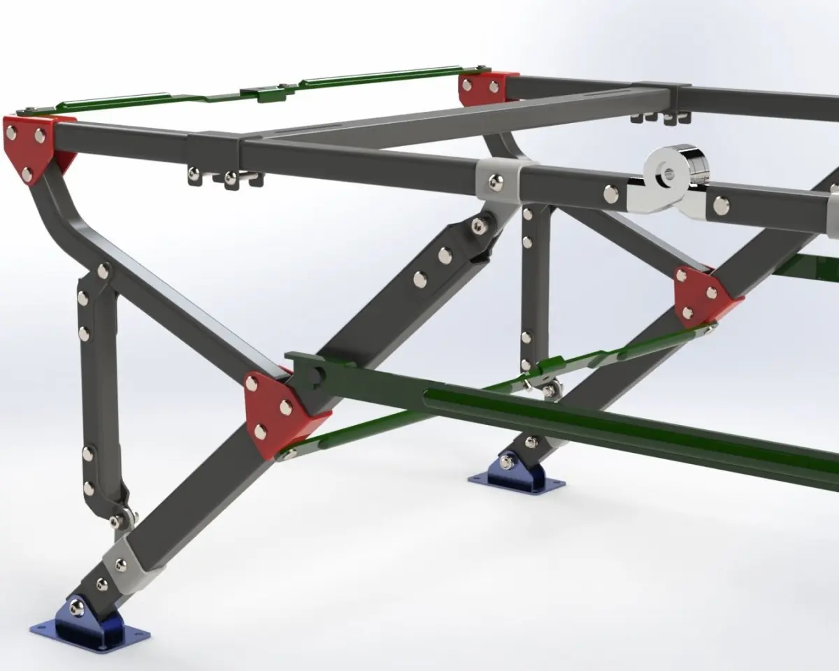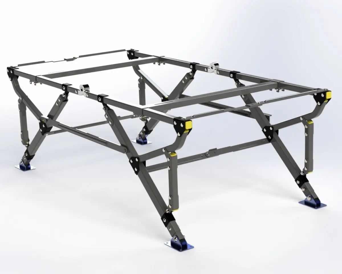 This is stand frame which you can used to hold any equipment outdoor such as air conditionner unit.Two type of profiles are used in this design 20 x 20 mm and 20 x 30 mm.The frame is foldable and adjustable in height.Other parts are sheet metal.In this design contain Joint connector with lock that help the mechanism to be folding easly.