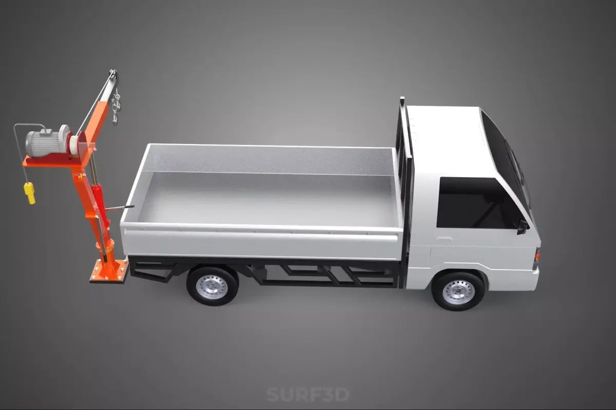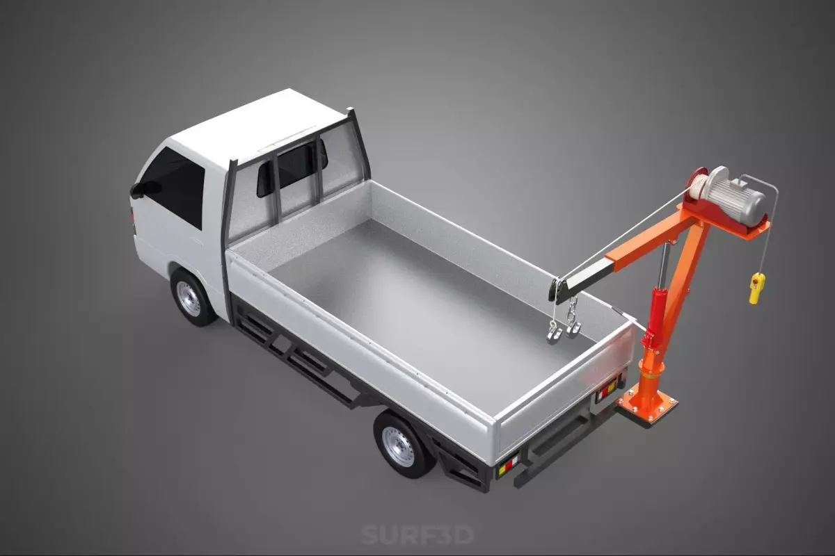 A Folding Mounted Bed Crane Hoist Lift with Electric Winch Attached on a Pickup Truck is a specialized, mobile material handling apparatus designed to facilitate the loading, unloading, and positioning of heavy or cumbersome objects directly from or onto the bed of a light-duty utility vehicle. This integrated system combines the inherent mobility and versatility of a pickup truck with the lifting capabilities of a small crane, providing a highly portable and self-sufficient solution for various operational needs in diverse environments.