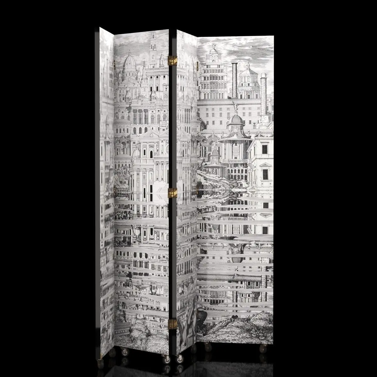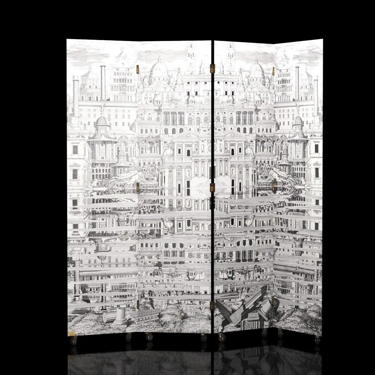 Folding Screen Città che si rispecchia by Fornasetti, circa 1950Dimension: 205x205x4 cm