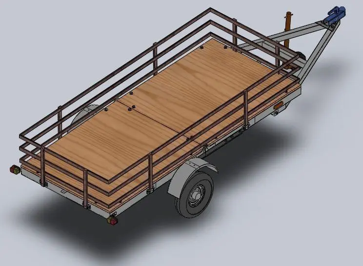 This is a 3D model of folding trailer for shipping and handling objects and materials. It is modelled in SolidWorks.