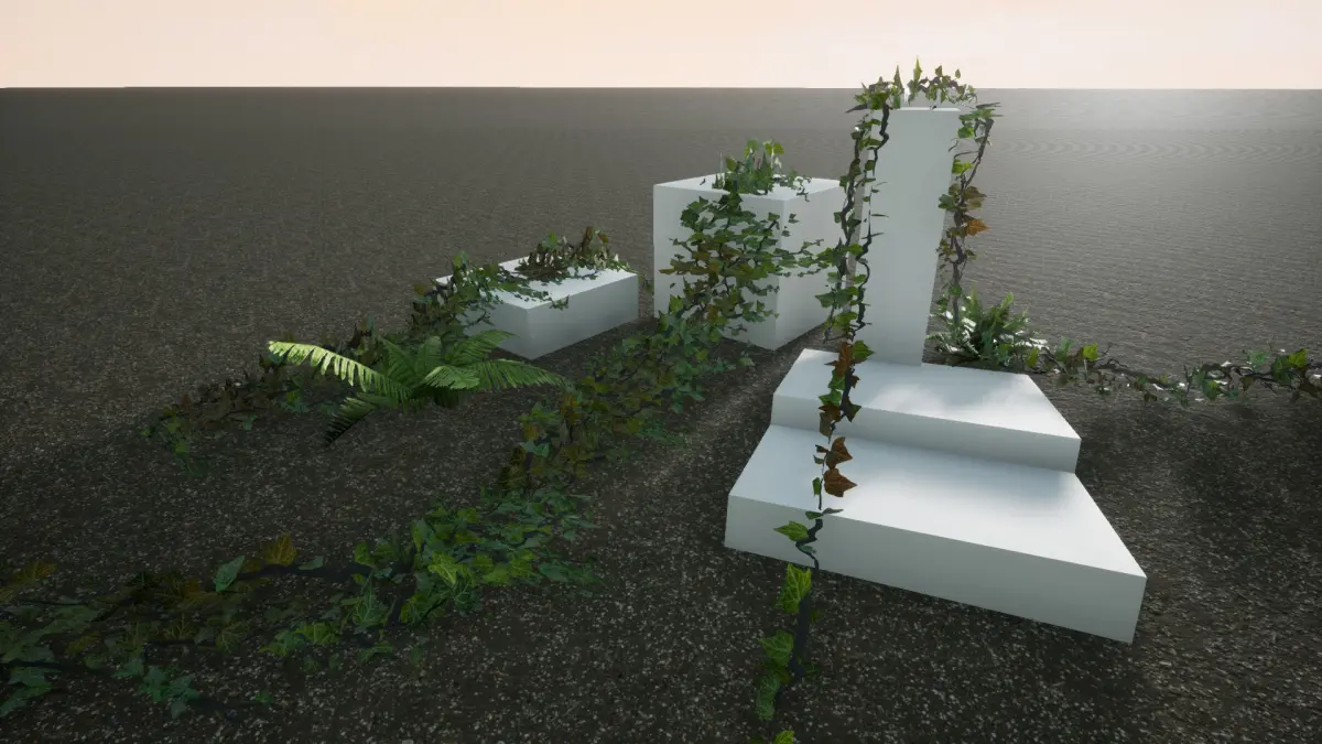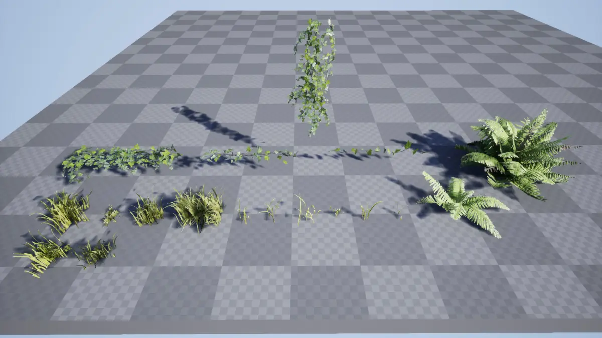 Adjustable Interaction with Characters Spline based editor Blueprint extensionLow Poly Fern & GrassLooping Vines Decay & Season Coloring (Seasons? no problem) Number of Blueprints: 3Mesh count: 18Polygon count: 20-40006 Materials & 19 TexturesTexture sizes from 2048 to 4096No LODs & no collisionsSupported Development Platforms: Supported on All platformSupported Target Build Platforms: Supported on All platform