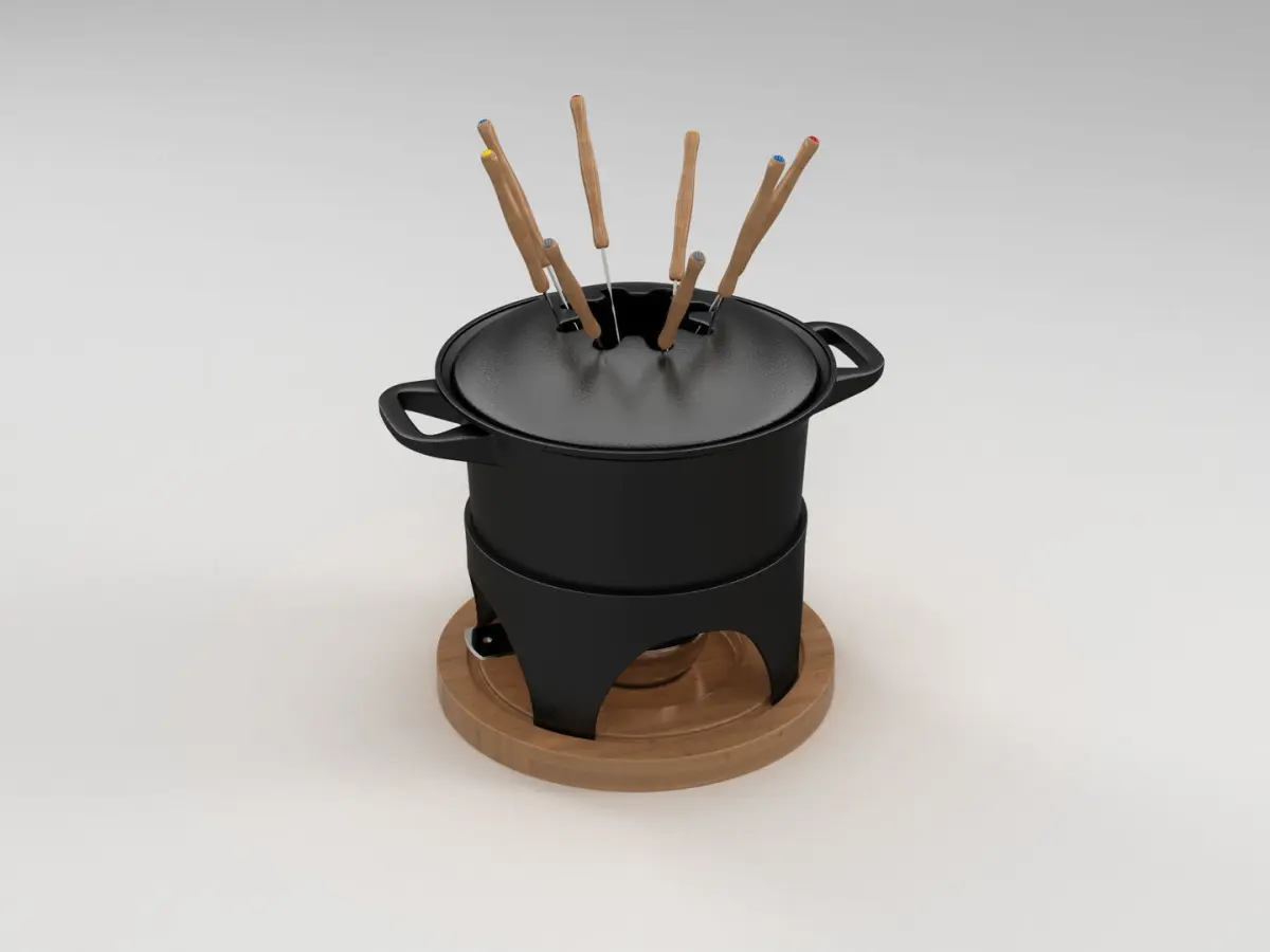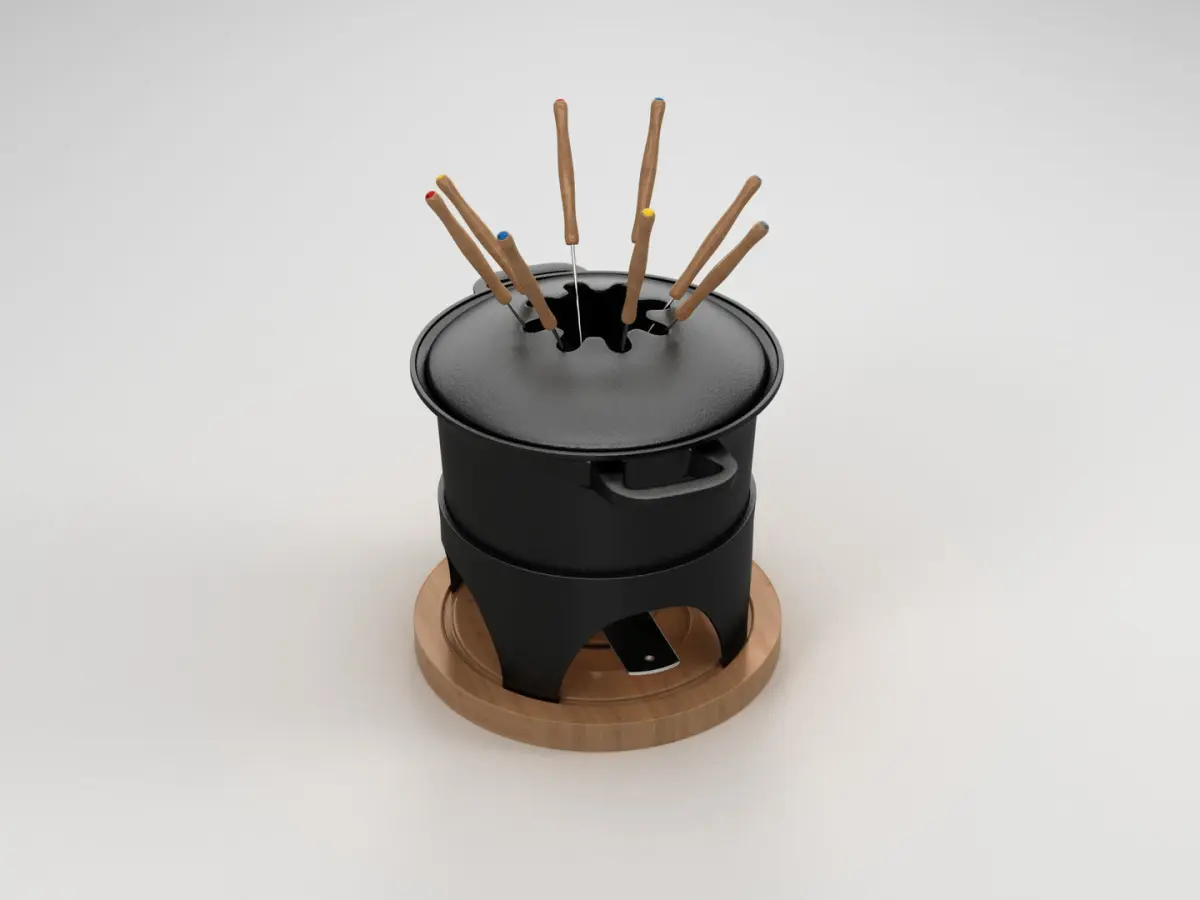 A DETAILED 3D MODEL OF A FONDUE SET: