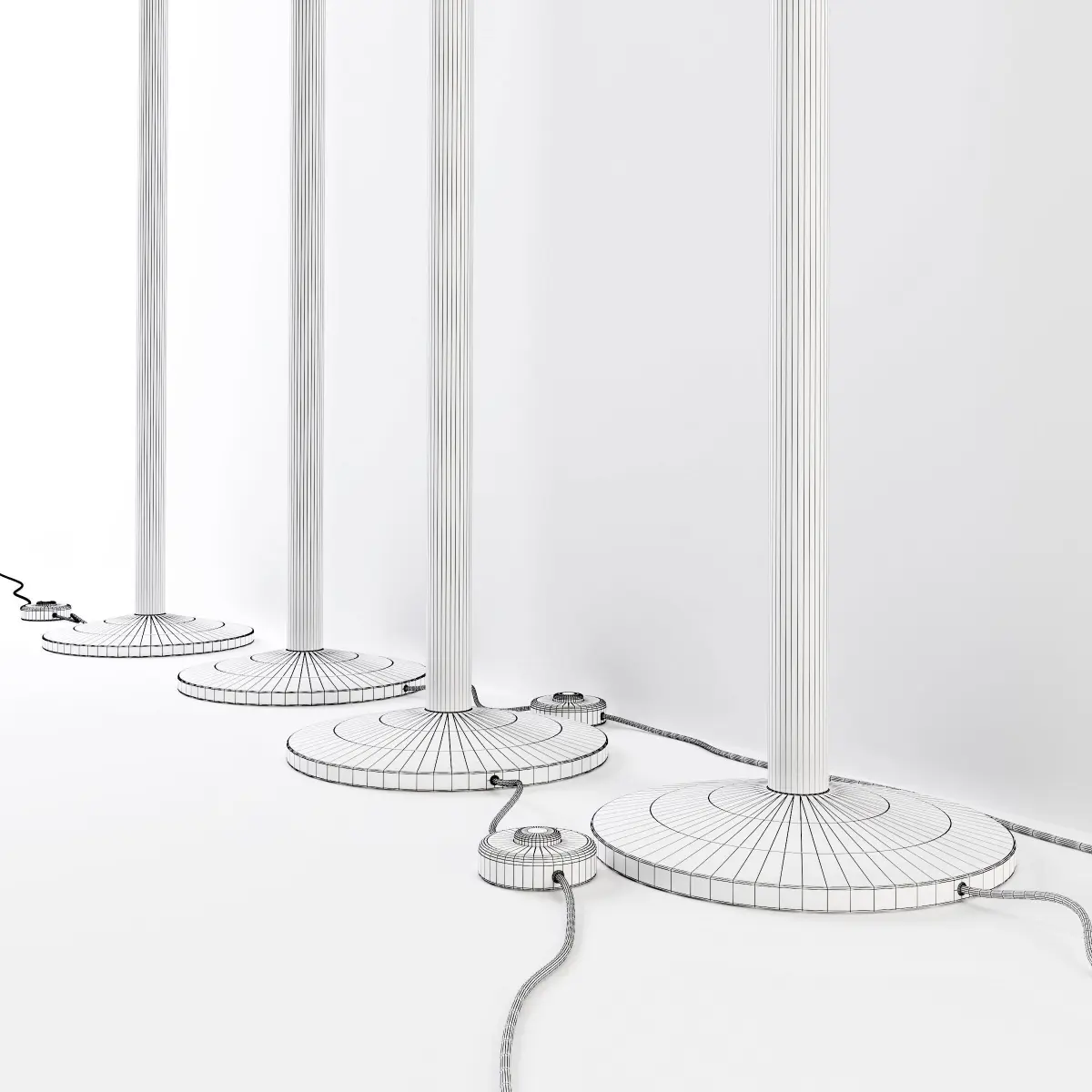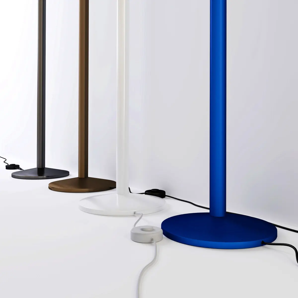 A lamp with such a modern personality that its date of birth is hard to believe. A long, narrow stem opens in anupward swoop to catch an upturned cone that hides the light source. Luminator was the first example on the market of an indirect emission floor lampFloor lamp with dimmer. Indirect light emission. Nickel-plated brass finish. Black power cable, dimmer and plug.Dimensions: 31x190cmhttp://www.fontanaarte.com/en-us/lighting/floor-lamp/luminator