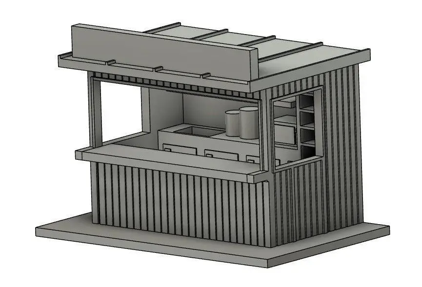 Place this little booth on your fairground or market area. You can use the included kitchen to design it as a food booth or leave the kitchen away to make any other type of booth.