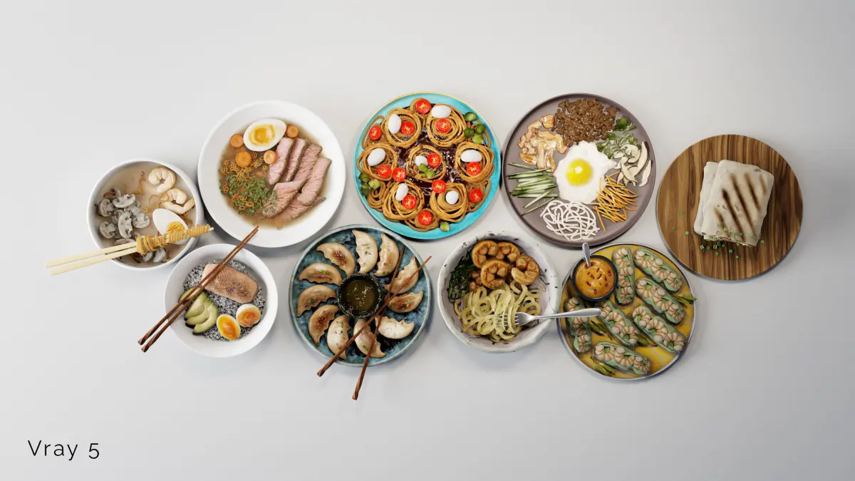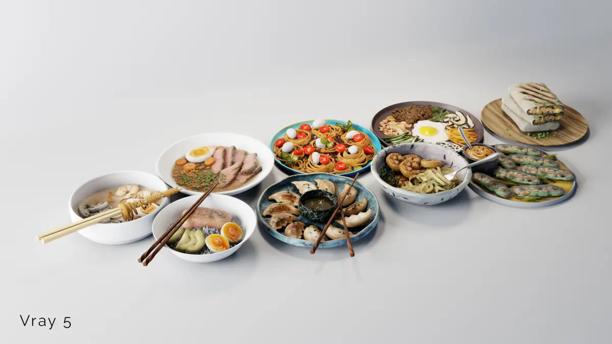 High quality, highly detailed 3D models of (mostly) asian food dishes. Every dish is hand sculpted in Zbrush and handpainted in Substance Painter, no photo textures were used.Preview images are rendered using Vray, Corona and Keyshot. There are some close-up shots showing the level of detail of the models. Check out turntables 2K video (vimeo link) to see each model spinning in 360 degrees.