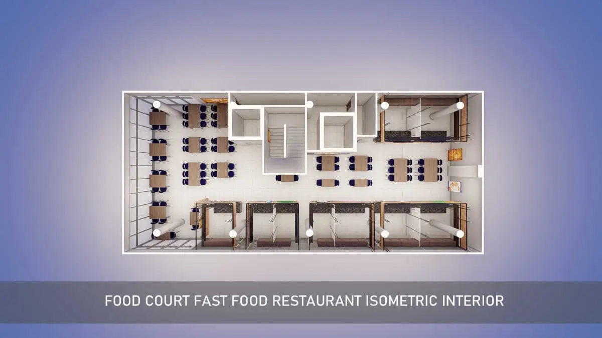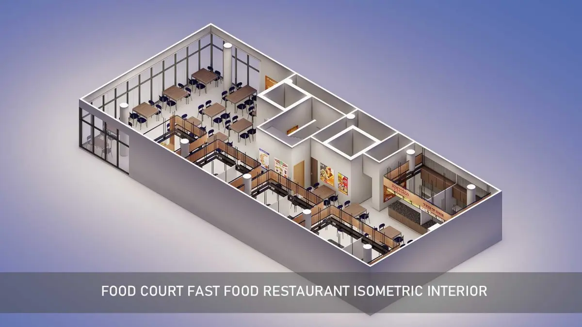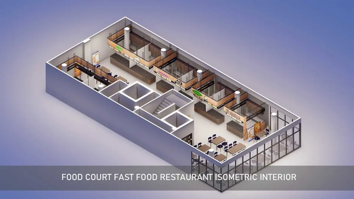 Food Court fast food Restaurant isometric Interior