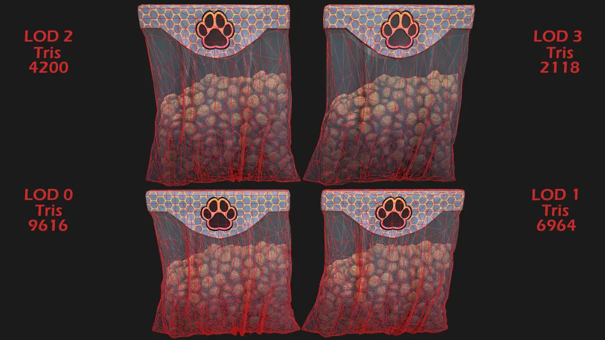 - Faces: 628(LOD0),533(LOD1),397(LOD2),256(LOD3).
