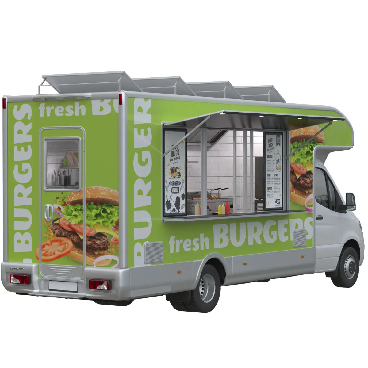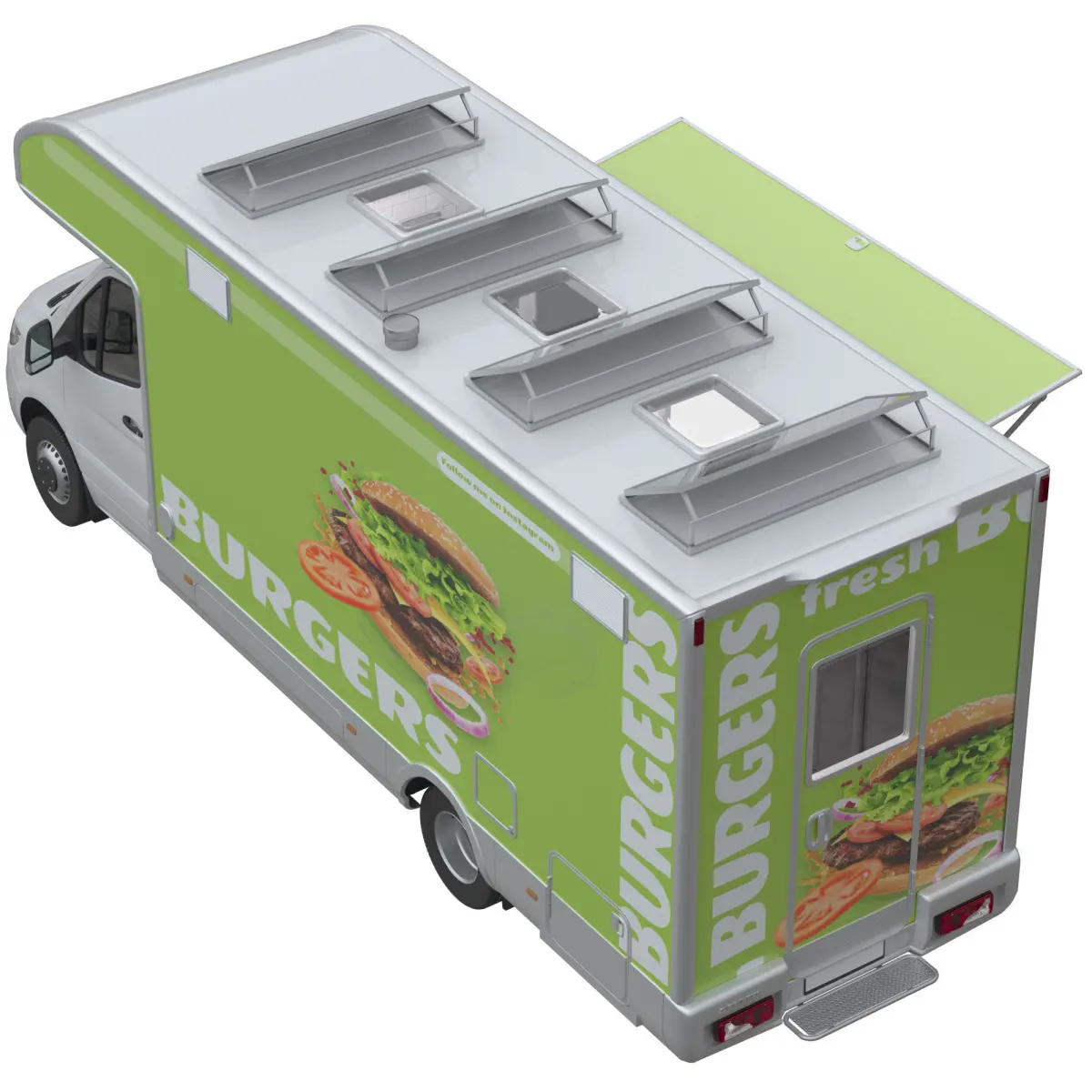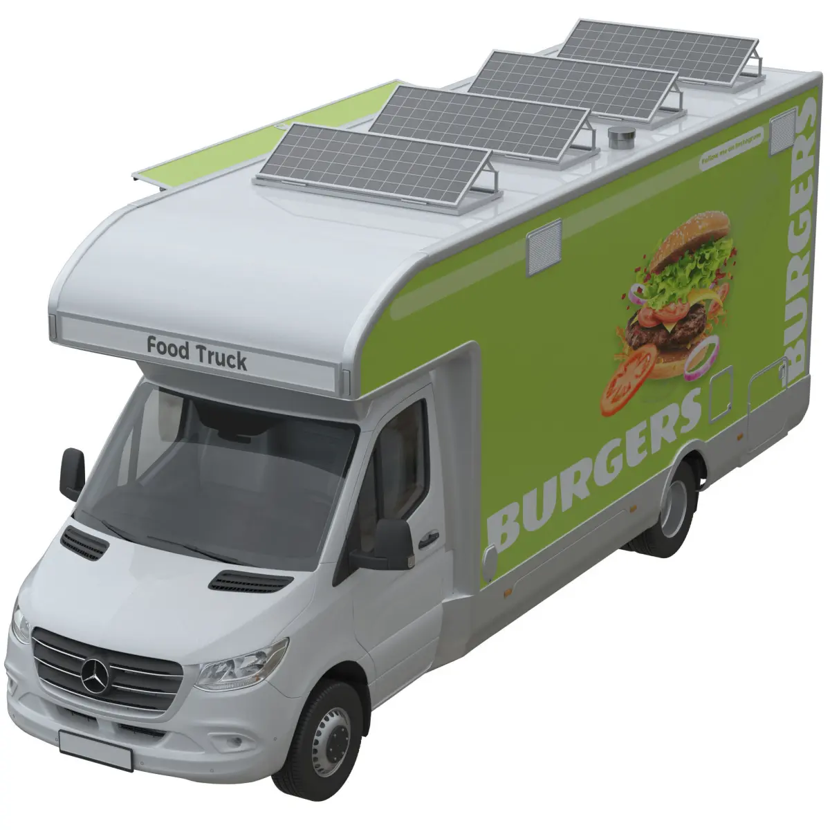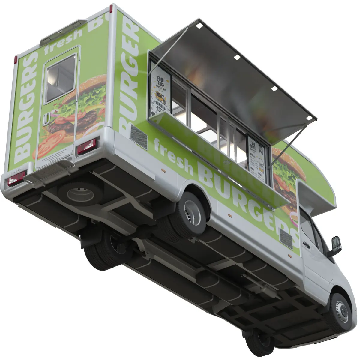 Food Truck Sprinter with kitchen equipment for cooking burgers, french fries.