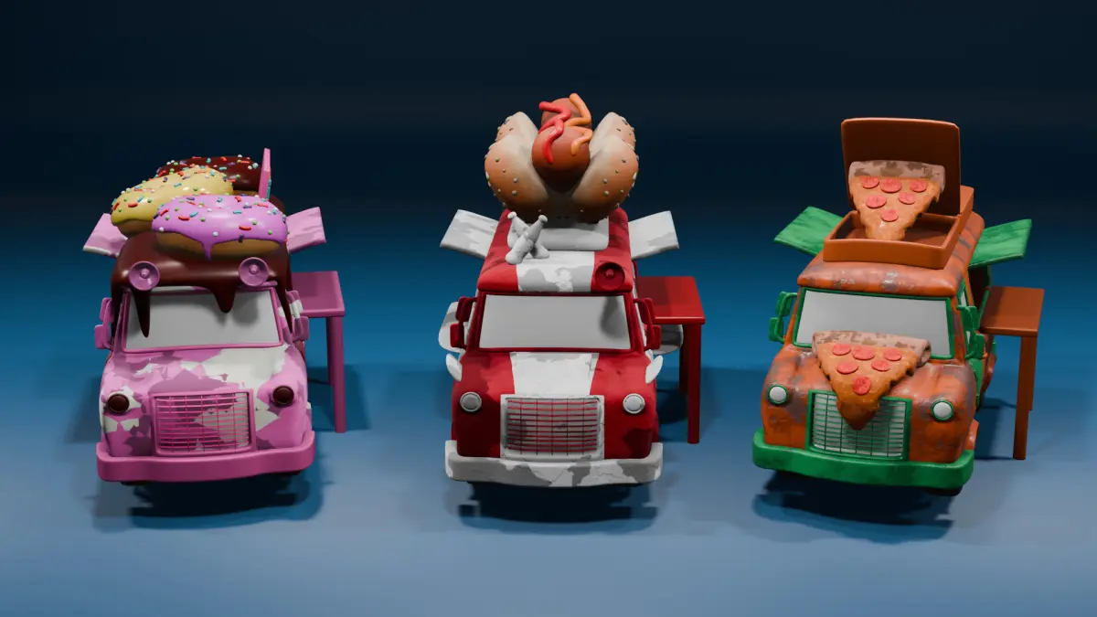 Hi everyone. In this project, I modeled 3 food trucks. Each food truck has its own animation. UV maps opened. The tissues used were specially prepared. The textures were cooked. All textures are 4k. You can watch the promotional video.