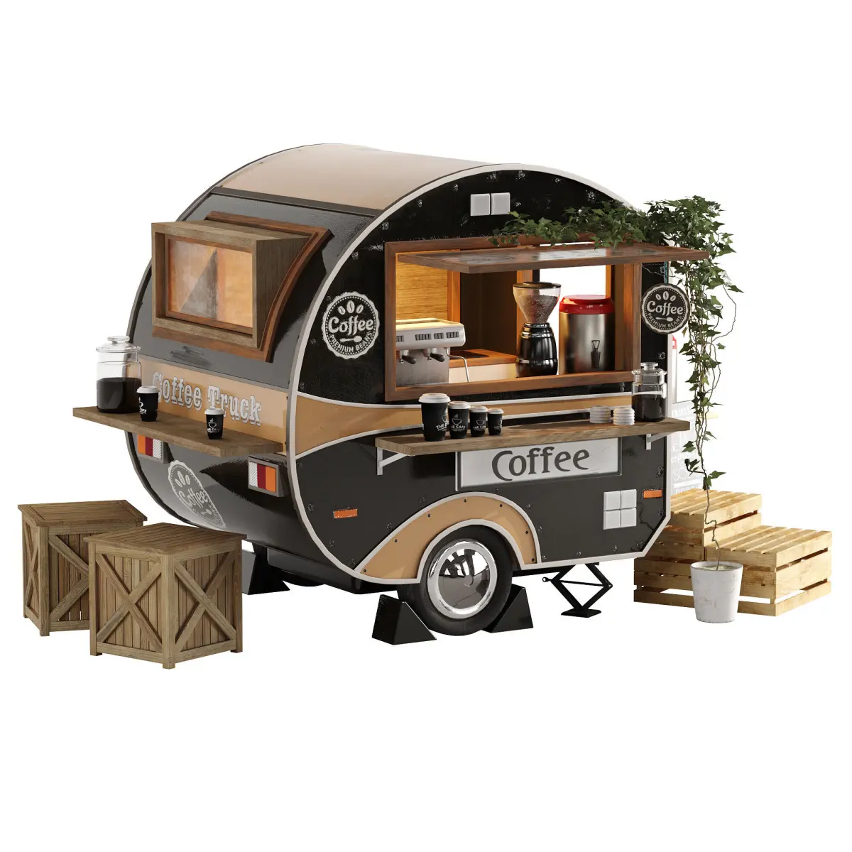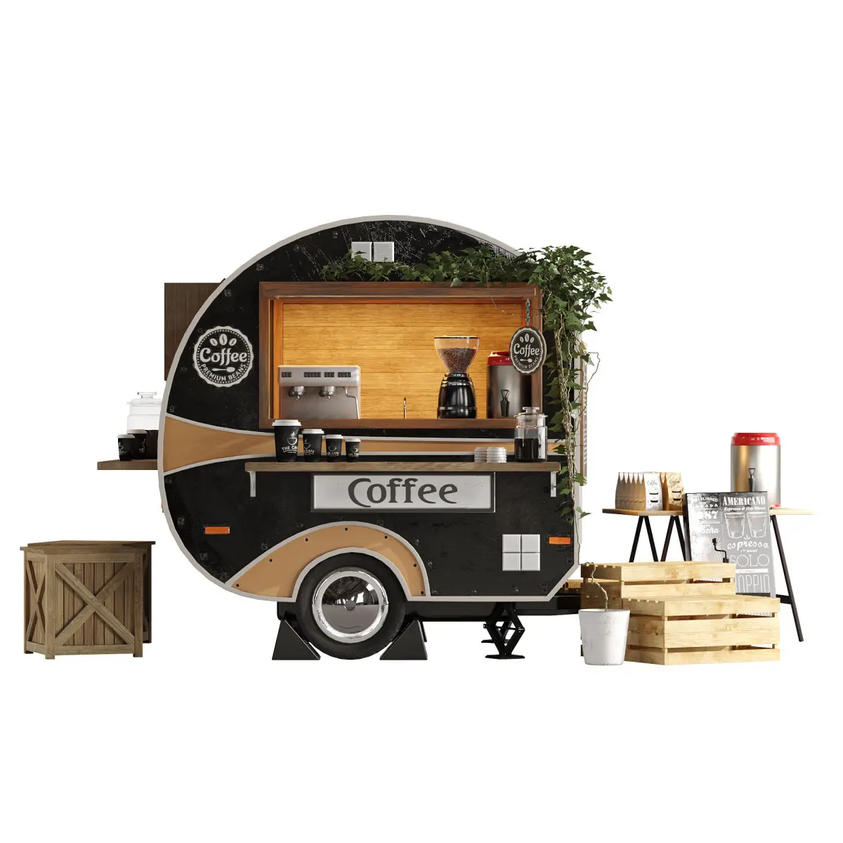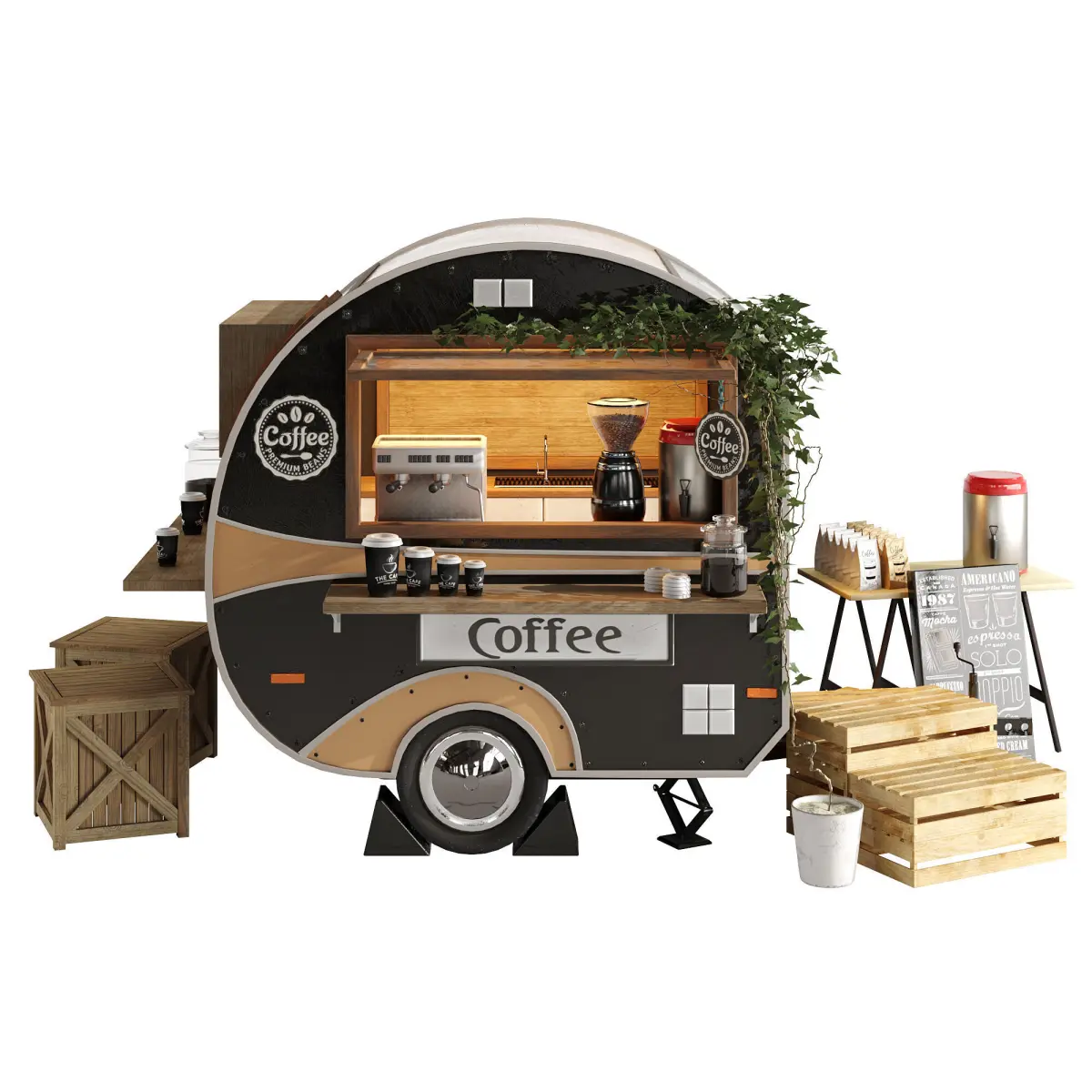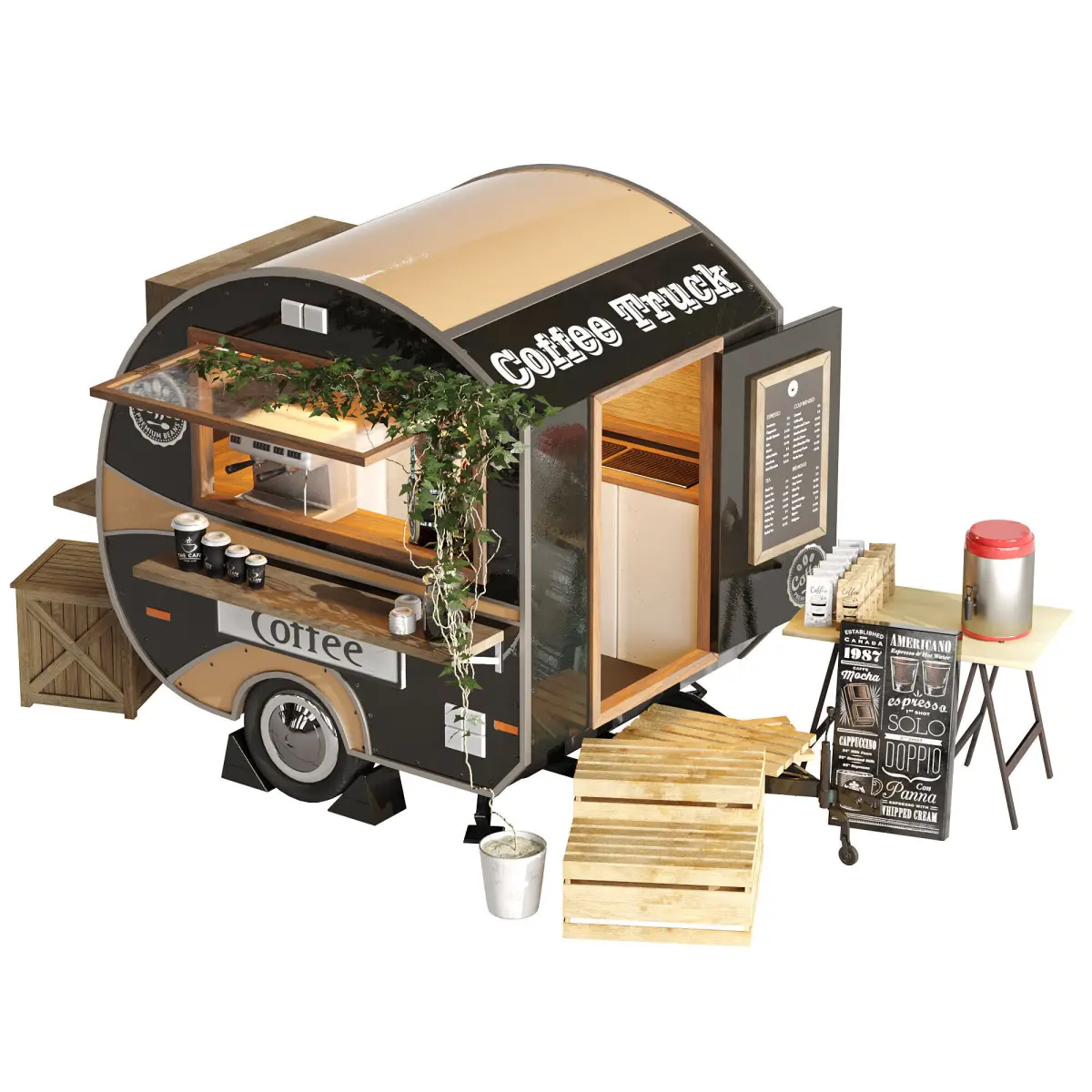 Realistic model of Foodtruck trailer set 6