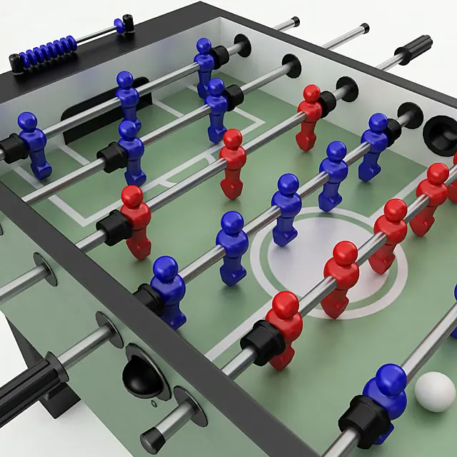 High poly 3d model of a Foosball Table. Comes complete with a high resolution texture map and procedural maps. Comes complete with a high resolution texture map for the playing surface and Vray procedural materials. Standard materials are also included for the 3ds max version and all exported geometries.