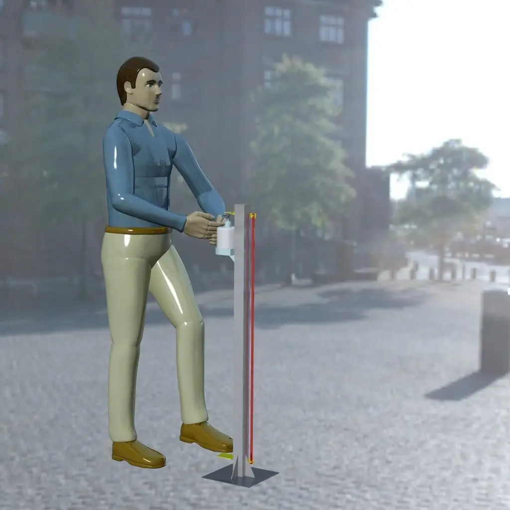 In the midst of this Corona Virus Outbreak we have designed a Foot operated Sanitizer machine. This 3D model is true to scale & just download it & Manufacture it as per the dimensions. All the material used in the design can be easily available in the market. You can use it for mass production or for Single piece manufacturing also.