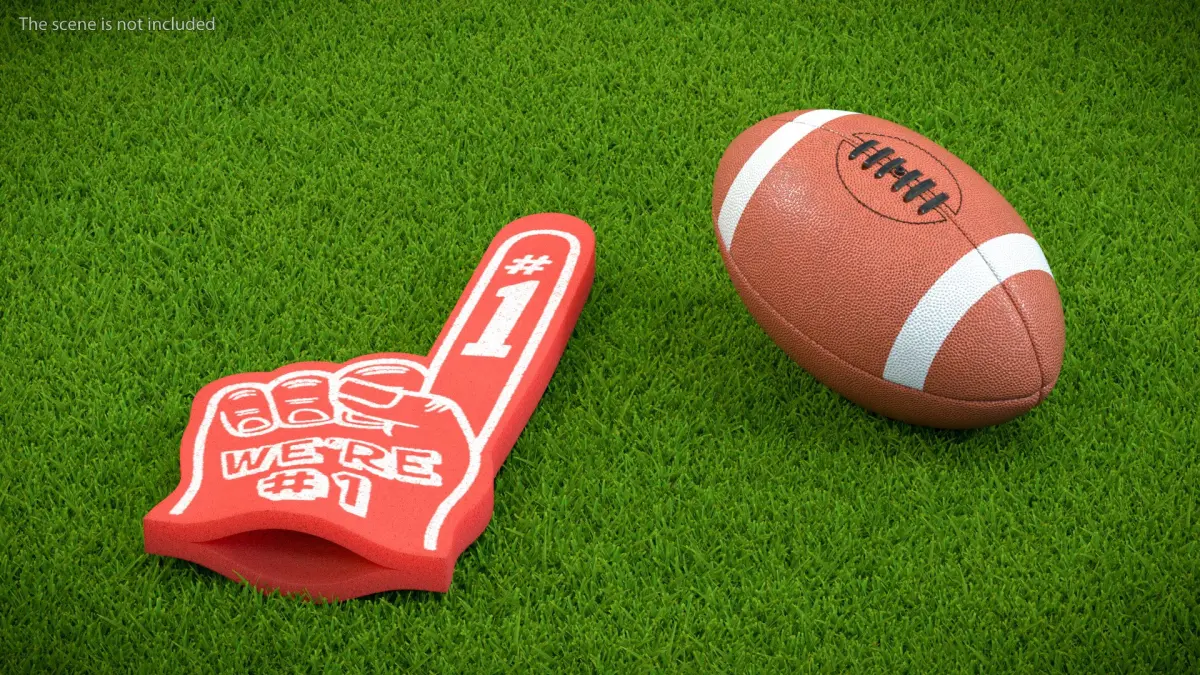 Football Fan Character with Foam Finger and Ball is a three-dimensional model of rugby or American football adult, male fan character.
