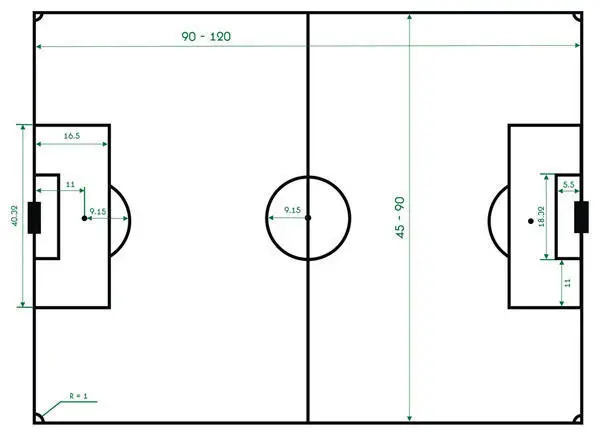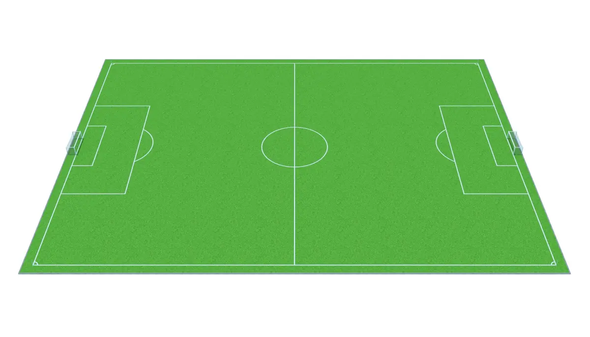 Low polygonal model of the football field, dimensions 90 to 120 meters. The model set includes a model: gates, flagpoles, field.