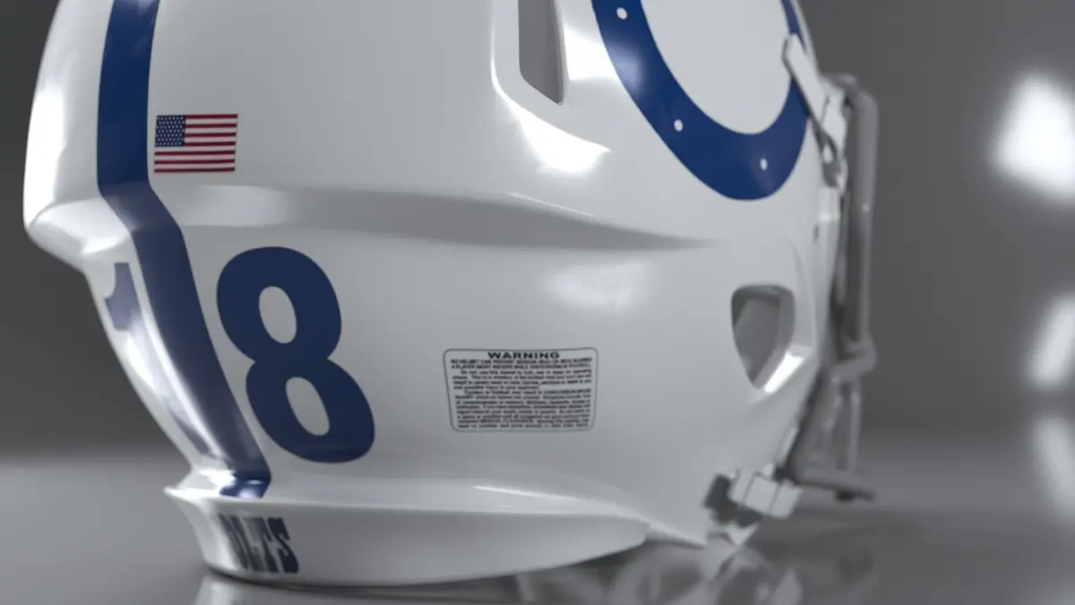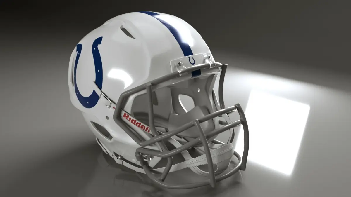 3D model, football helmet, team Colts. High resolution, great detail.Made in 3Ds MAX with V-Ray next. Materials with Substance painterRenders with V-ray nextVideo in Twinmotion 2020