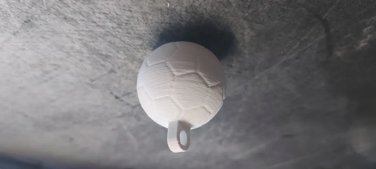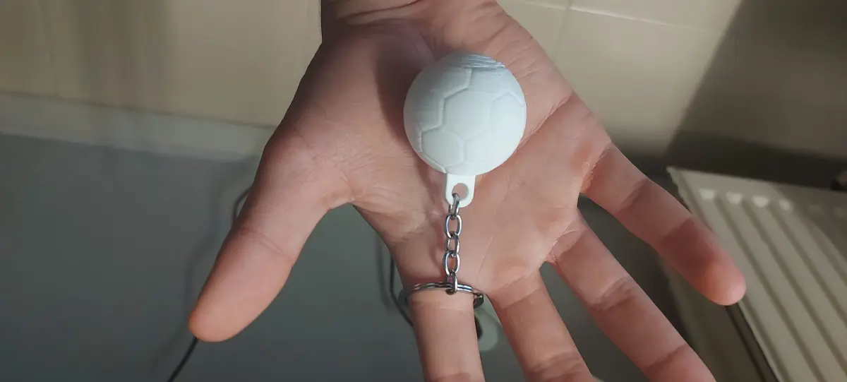 A very resistant soccer ball-shaped keychain that looks great with your house keys.Its size is 4 cm in diameter together with a protrusion with a hole to insert the ring for the keys.The pentagons on the ball can be painted black for a more professional finish if desired.