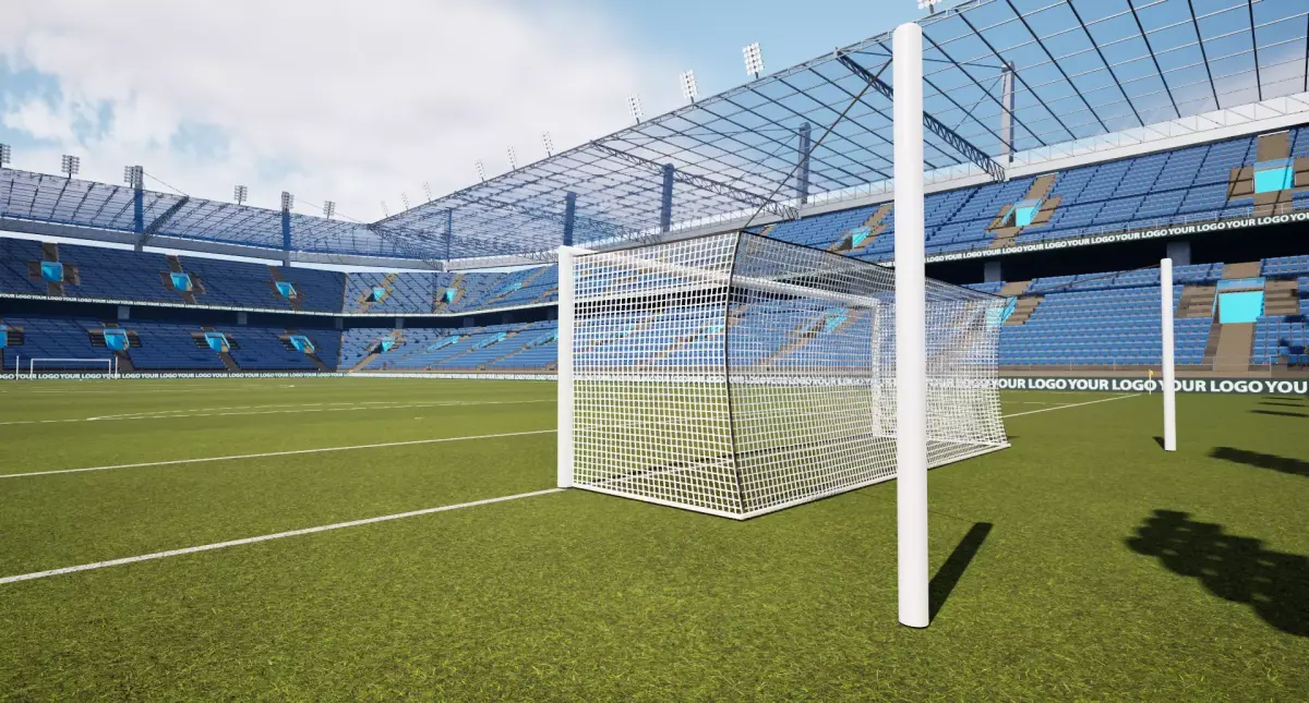 Pitch is scaled to the correct dimensions and is 105 by 68 metres (115 yd × 74 yd) and goals are the correct dimensions as set out by the leage