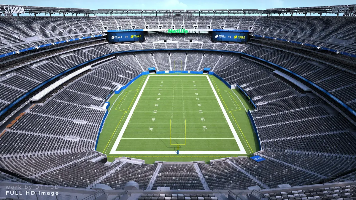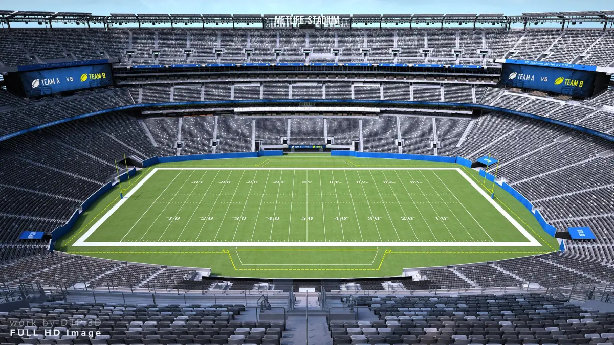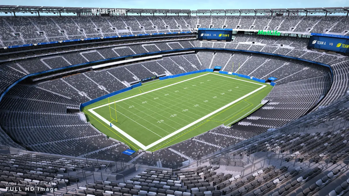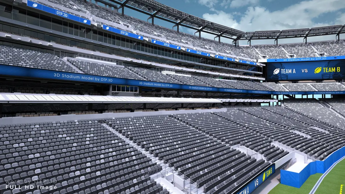 Stadium interiors are not modeled.