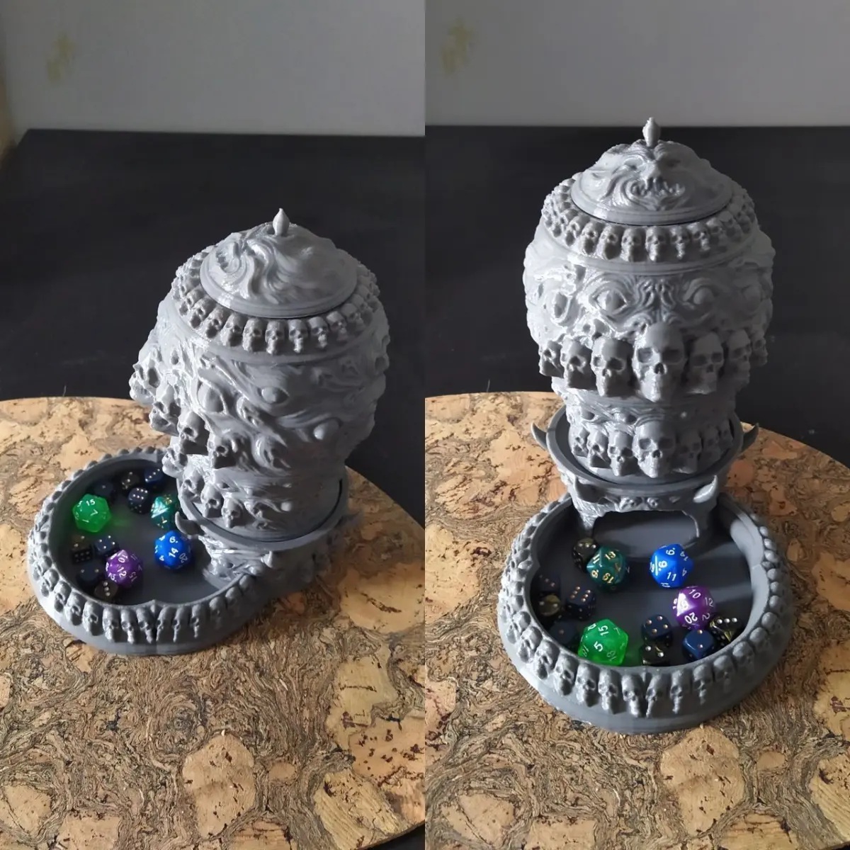 Supports: No**Printed at 0.2 mm layer height and at 100 mm/s speed still printed well bu did a little rugosity under the big sculls and the top part of the dices door of the bottom piece of the dice tower. At less speed or layer height it should not do it.Speed: 100 mm/s (but you'll get a smoother look at less speed)Layer height: 0.2 mm (but you'll get a smoother look at less height)