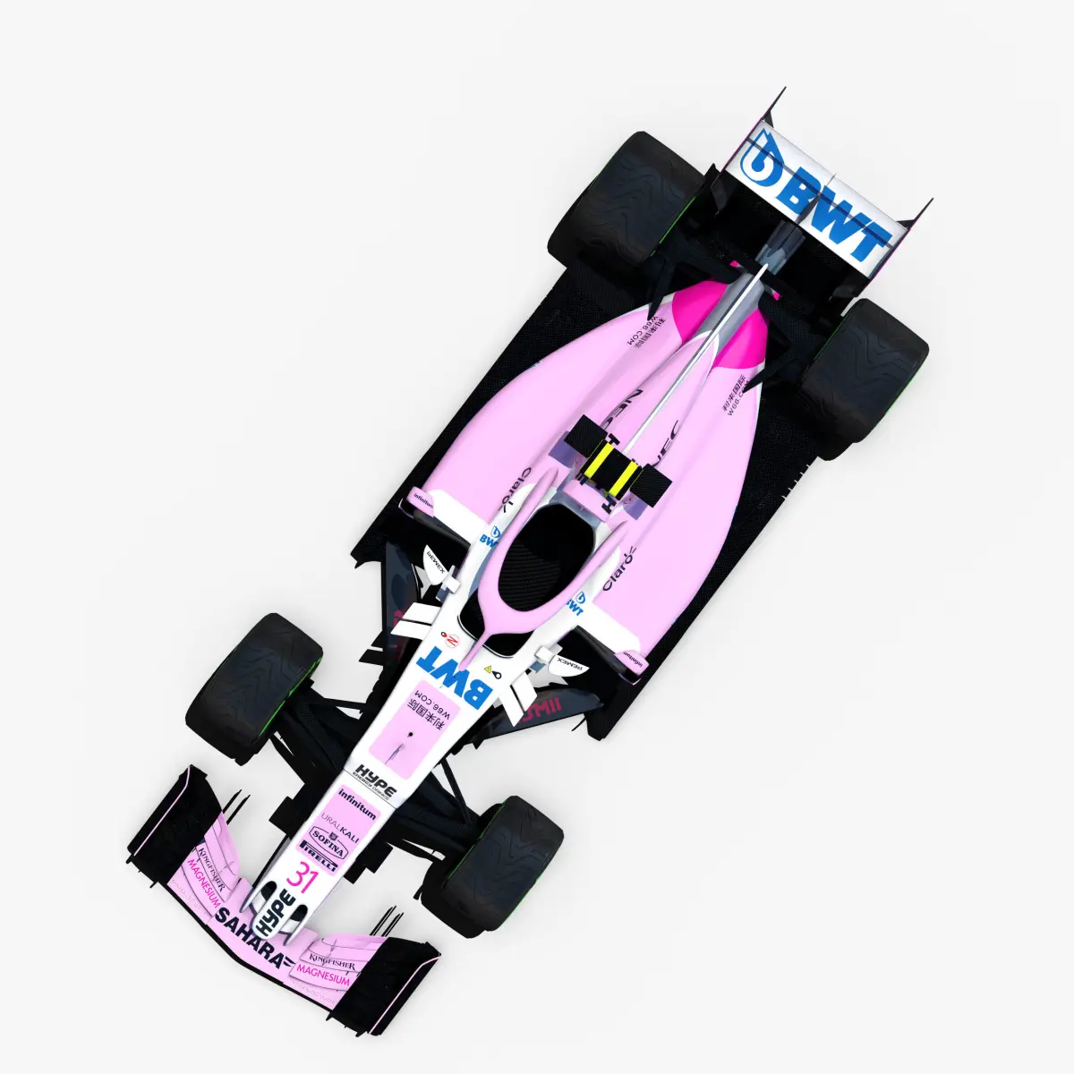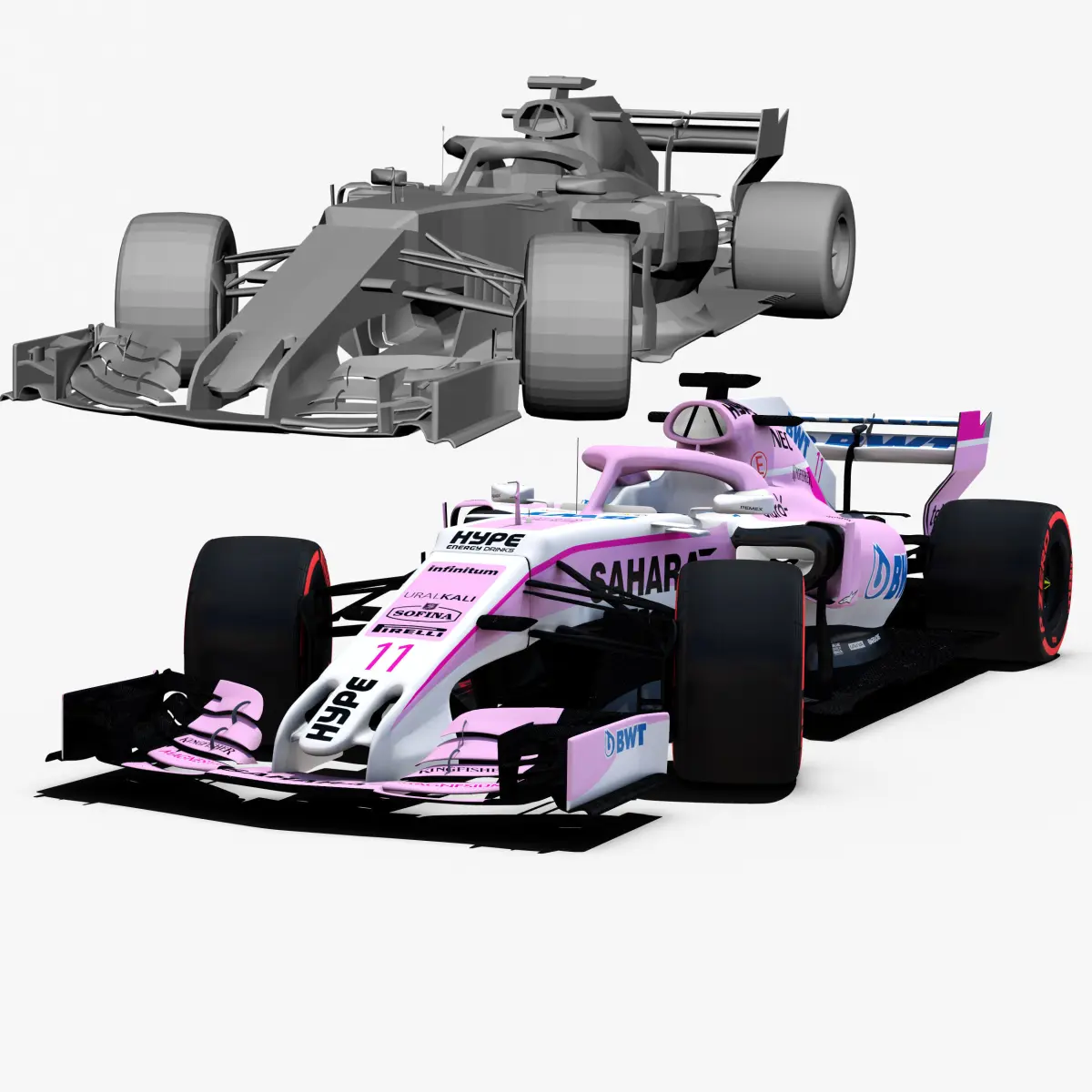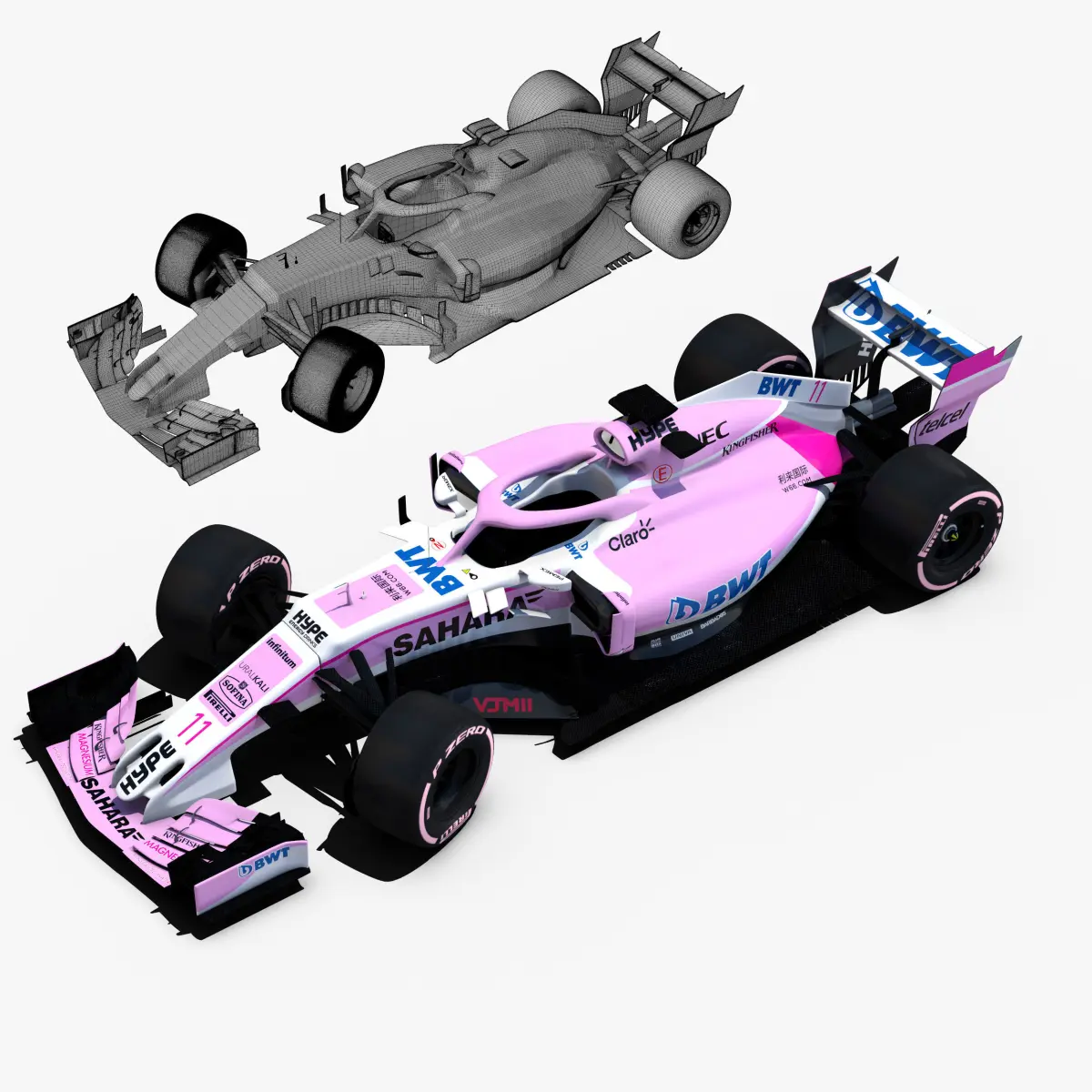 This is a 3D low poly model ,it was designed to provide a high definition in a low poly. Standard low-poly mesh with specific poly count. It`s the most accurate and realistic of the market.It has all of details. Rigged in the maya version. This is a recreation of the model,it can suffer modification over the season.Included all types os wheels, textures for 2 drivers.The model is completely ready for use visualization in maya. For low poly model simply press 1 and for the high resolution press 3. In Cinema4d go to function menu and subdivide. In 3dmax meshsmoothIn the low poly: Poly count : 53147Vertex count : 55914In the high poly: Poly count : 850232Vertex count : 861129Textures included. Each texture is in jpg format and have a 4K texture resolution for high quality It has color textures, specular textures, displacement textures,bump textures.The files are obj, fbx, mb ,c4d and 3DS.In formats c4d, 3ds, obj and fbx model exported to standard materials (textures), not contain mental ray shaders. files with the model does not contain extraneous or hidden objects (lights, cameras, etc.) Included rigging and constrains and driven keys only in the maya format.In the maya format you can easily change the wheels, the pilot and the DRS(open and close).original file format maya render in linear sRGB