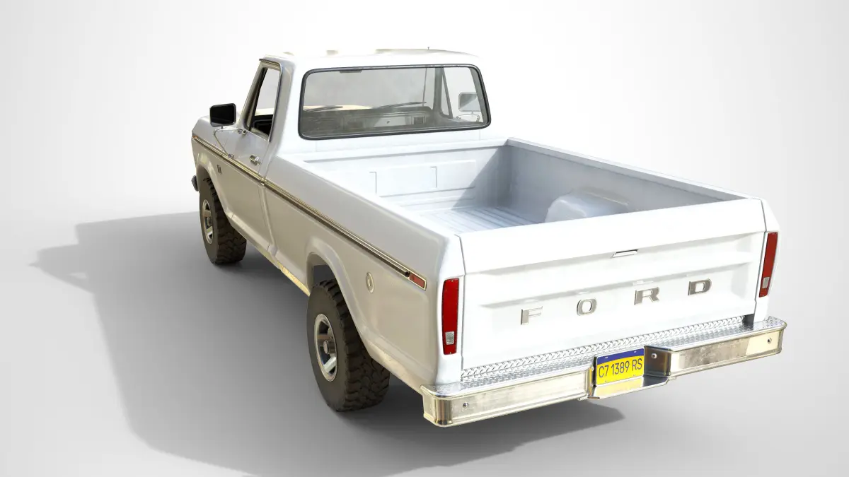 This is a classic American pickup truck made in 1976. The model(64 202k tris) is a real world scale AAA game ready asset with realistic textures in a quite new state, the model is positioned on the center of the world with Z axis up and facing to X axis. This asset has modeled lights, full details interior and exterior, openable doors and a high detail under car with a functional suspension. Doors, wheels and steering wheel are separated objects with the pivot in the right position for an easier animation.The asset is made using separated textures sets for make more optimized customization if it is needed. Textures sets as follows: • Exterior(4k texture). • Interior(2k texture). • Headlights(2k texture with transparency). • Indicators(2k texture with transparency). • Wheels(2k texture). • Decals(2k texture with transparency). • Glass(2k texture with transparency including windows and interior glass).All these parts can be easily replaced without have any optimization issue. This asset was made using the highest standards of optimization of the industry and it can be used on any modern game engine.