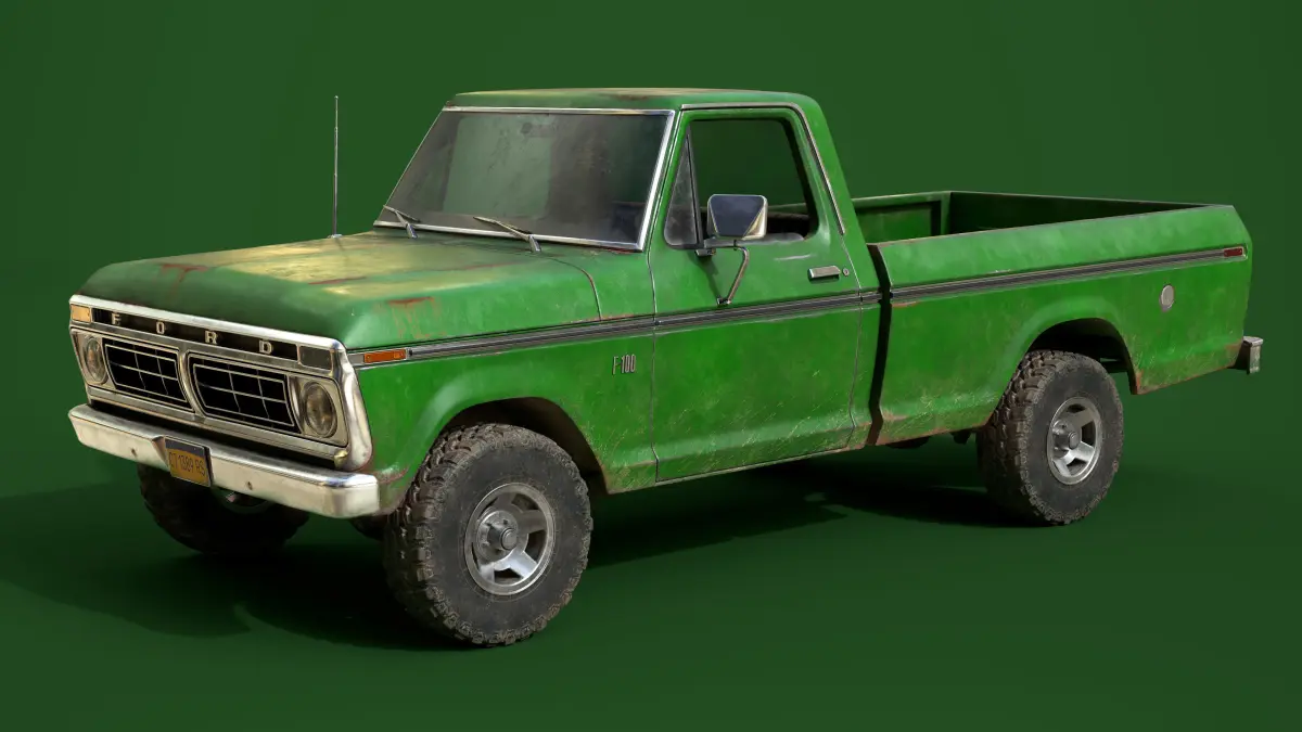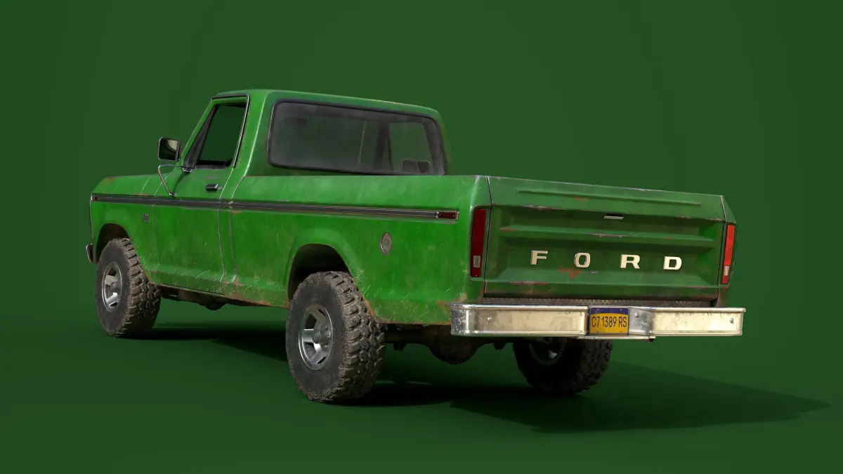 This is a classic American pickup truck made in 1976. The model(64 202k tris) is a real world scale AAA game ready asset with realistic textures in a quite new state, the model is positioned on the center of the world with Z axis up and facing to X axis. This asset has modeled lights, full details interior and exterior, openable doors and a high detail under car with a functional suspension. Doors, wheels and steering wheel are separated objects with the pivot in the right position for an easier animation. The asset is made using separated textures sets for make more optimized customization if it is needed. Textures sets as follows: • Exterior(4k texture). • Interior(2k texture). • Headlights(2k texture with transparency). • Indicators(2k texture with transparency). • Wheels(2k texture). • Decals(2k texture with transparency). • Glass(2k texture with transparency including windows and interior glass). All these parts can be easily replaced without have any optimization issue. This asset was made using the highest standards of optimization of the industry and it can be used on any modern game engine.