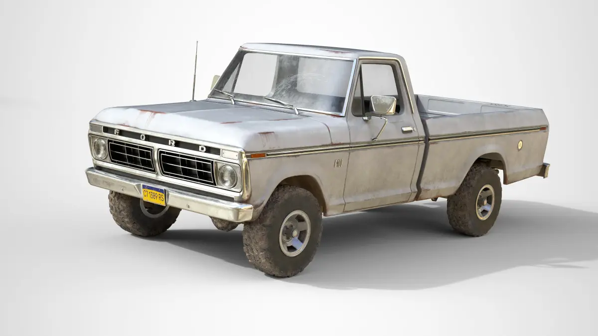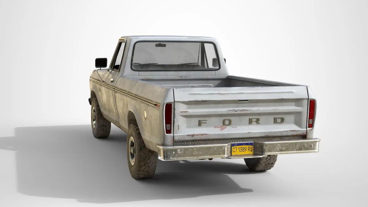 This is a classic American pickup truck made in 1976. The model(64 202k tris) is a real world scale AAA game ready asset with realistic textures in a quite used state, the model is positioned on the center of the world with Z axis up and facing to X axis. This asset has modeled lights, full details interior and exterior, openable doors and a high detail under car with a functional suspension. Doors, wheels and steering wheel are separated objects with the pivot in the right position for an easier animation.