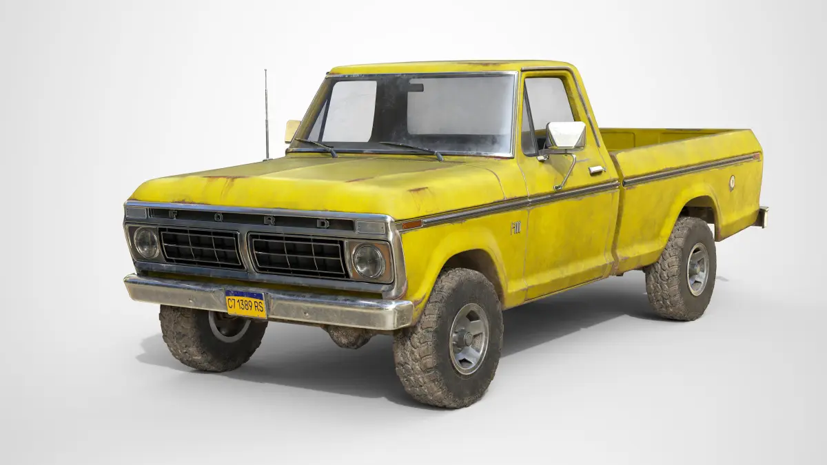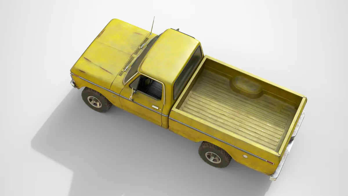 This is a classic American pickup truck made in 1976. The model(64 202k tris) is a real world scale AAA game ready asset with realistic textures in a quite used state, the model is positioned on the center of the world with Z axis up and facing to X axis. This asset has modeled lights, full details interior and exterior, openable doors and a high detail under car with a functional suspension. Doors, wheels and steering wheel are separated objects with the pivot in the right position for an easier animation.