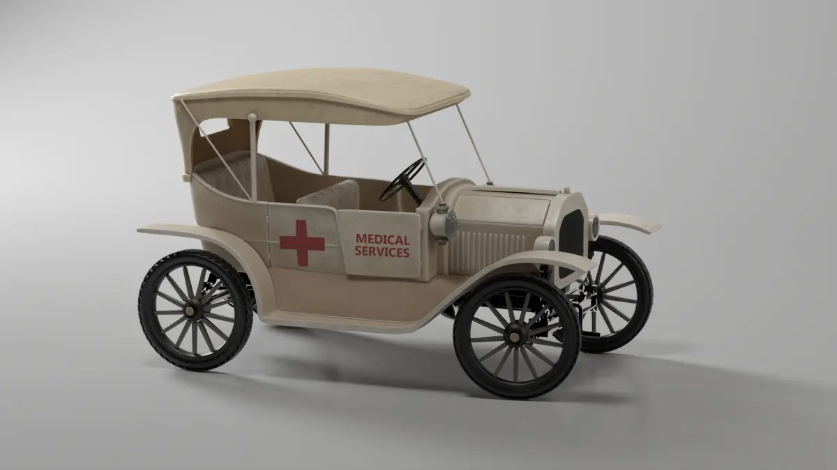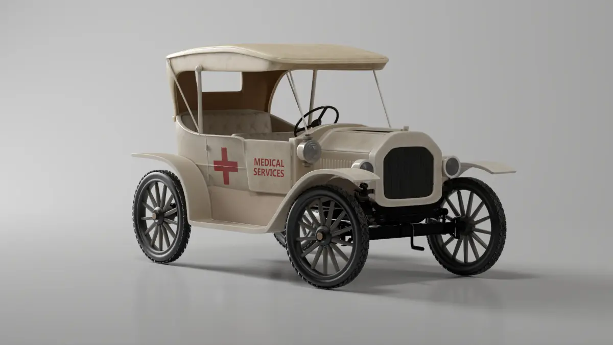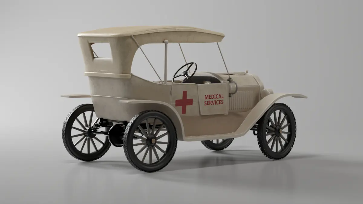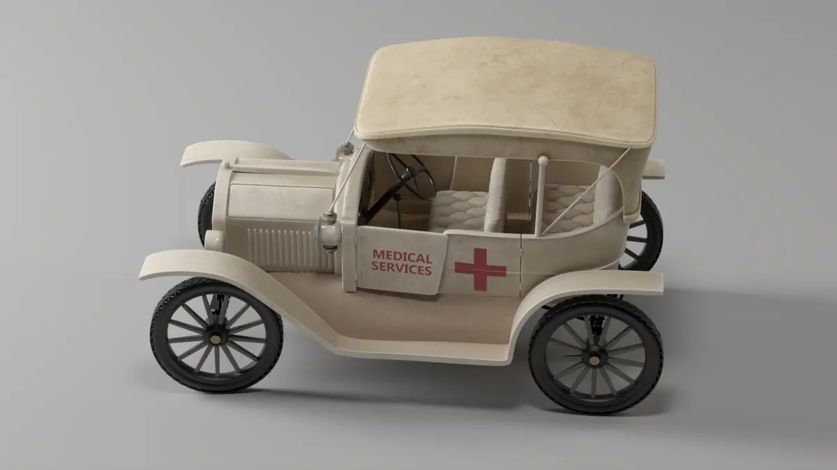 This 3D model represents a modified version of the iconic Ford T 1915, designed as an early Medical Service Vehicle. Ideal for historical or stylized scenes involving emergency or hospital environments. The asset comes with a detailed 4K PBR texture specifically designed to reflect the look of an early 20th-century medical response car.