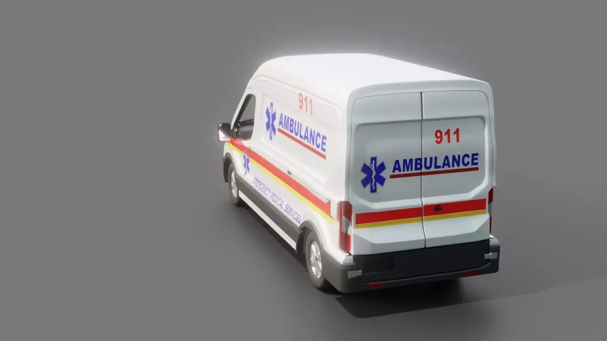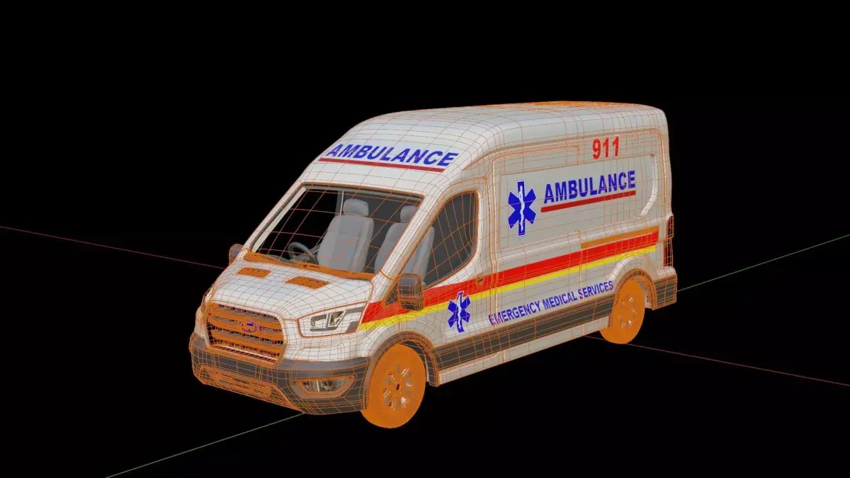 3D model of the Ford Transit AmbulanceCreated in Blender and already rigged.The mesh of the model in the Blender file format is mainly quads.