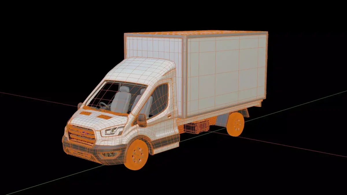 3D model of the Ford Transit BoxTruckCreated in Blender and already rigged.The mesh of the model in the Blender file format is mainly quads.