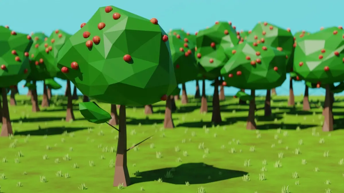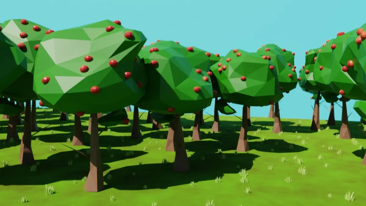 The grass and trees have both been built in geometry nodes which gives you lot's of control over stuff such as: