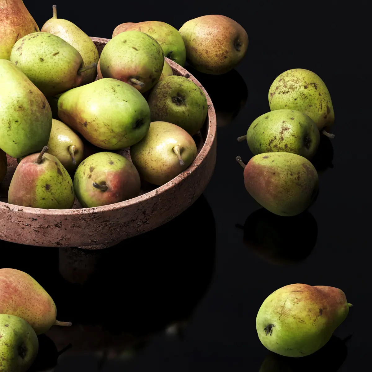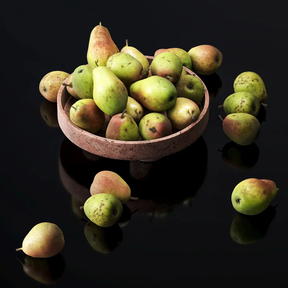 Forest beauty pear in a clay fruit bowl