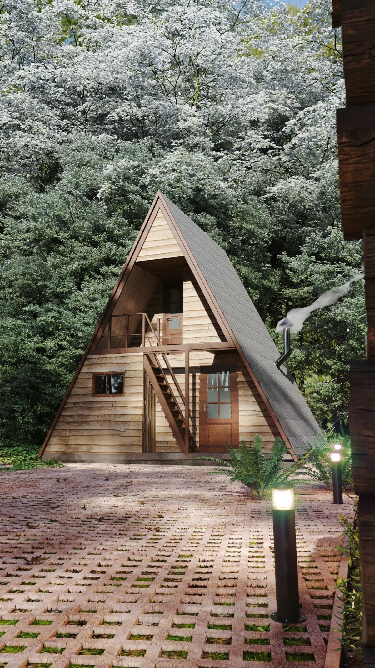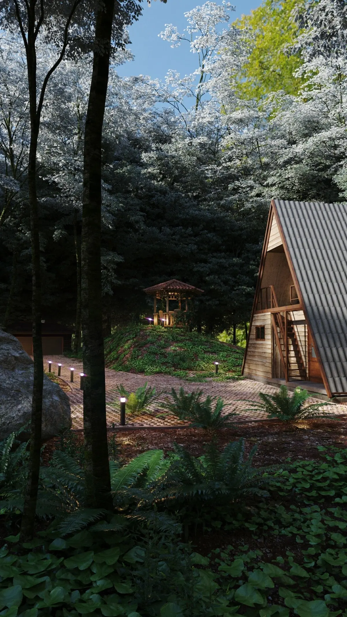 Let's ready to camp?Here a great Full Scene of a modern A - frame Cabin and an ancient rustic cabin inside a wild forest village.