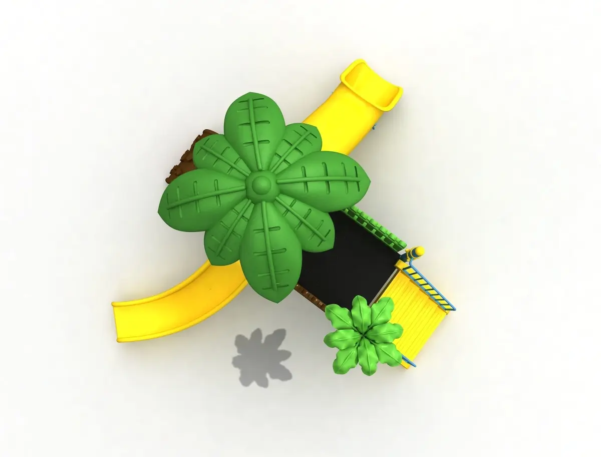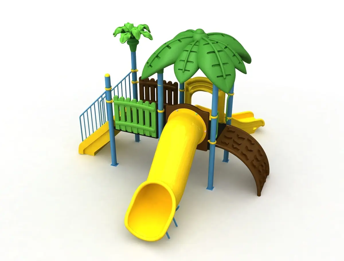 This is a metal 3d playground. include in bend Slide , tube slide , leaf roof, plastic barrier and polythene stairs, mountainer climber .