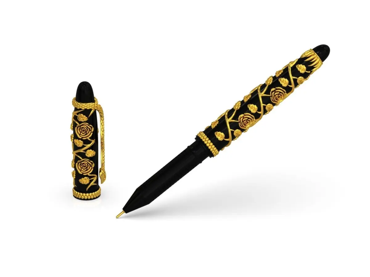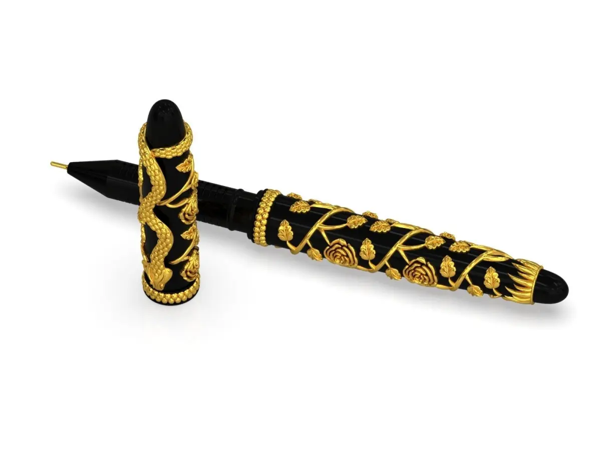 Extremely beautiful and exclusively designed pen on forest life theme. It's a one in a million kind of design. Design has been developed using organic and floral motives. The snake handle is the highlight of this pen. It a billionair's toy. It suits the people who are bold and want to stand out strongly among the great people. Its a never miss design for people who love to live luxurious. Its a print ready design and tested in metal cast.Pen length = 134 mm, width = 16.33 mmWeight in silver = 55 grms approx.Weight in 14k gold = 73.77 grms approx.Actual weight will be less than estimated weight.