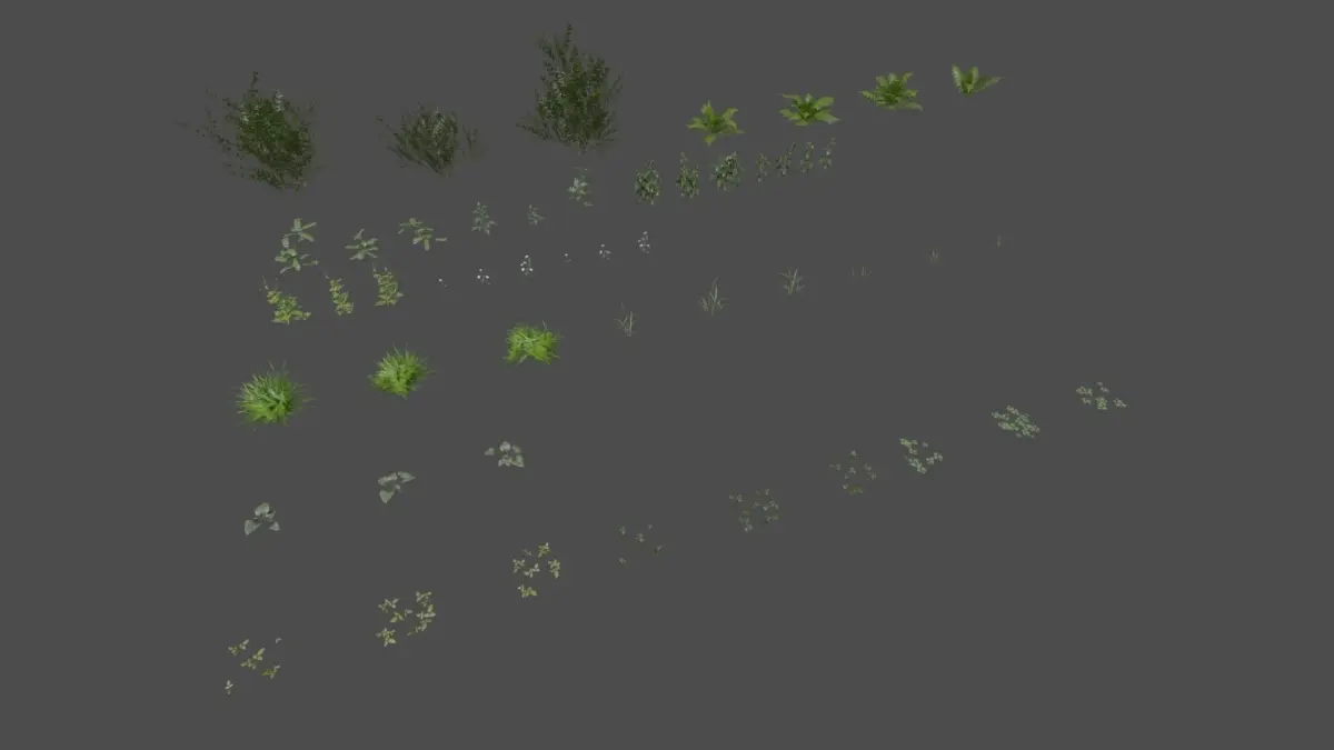 A Lowpoly, gameready, pbr, realistic set of 51 plants grouped into 15 sets of 3 to 7 variants.Designed for using in games or realtime applications.