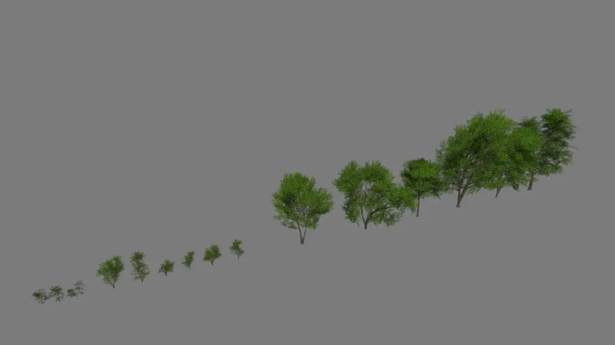 - Big and medium trees have 4 LODS