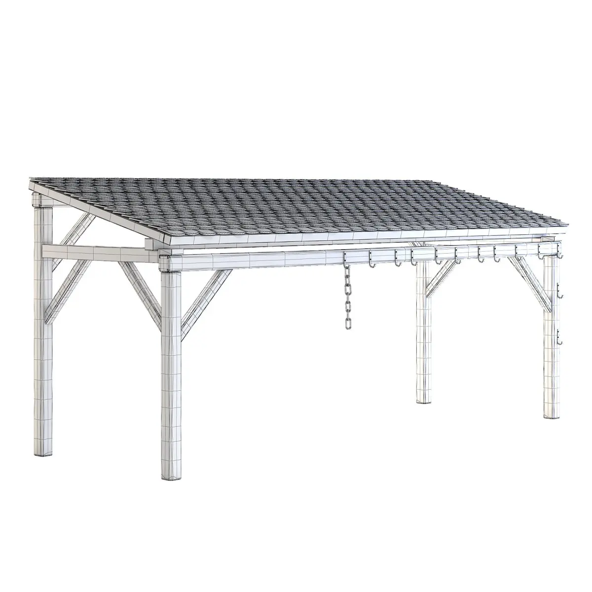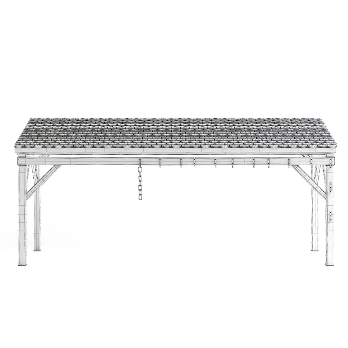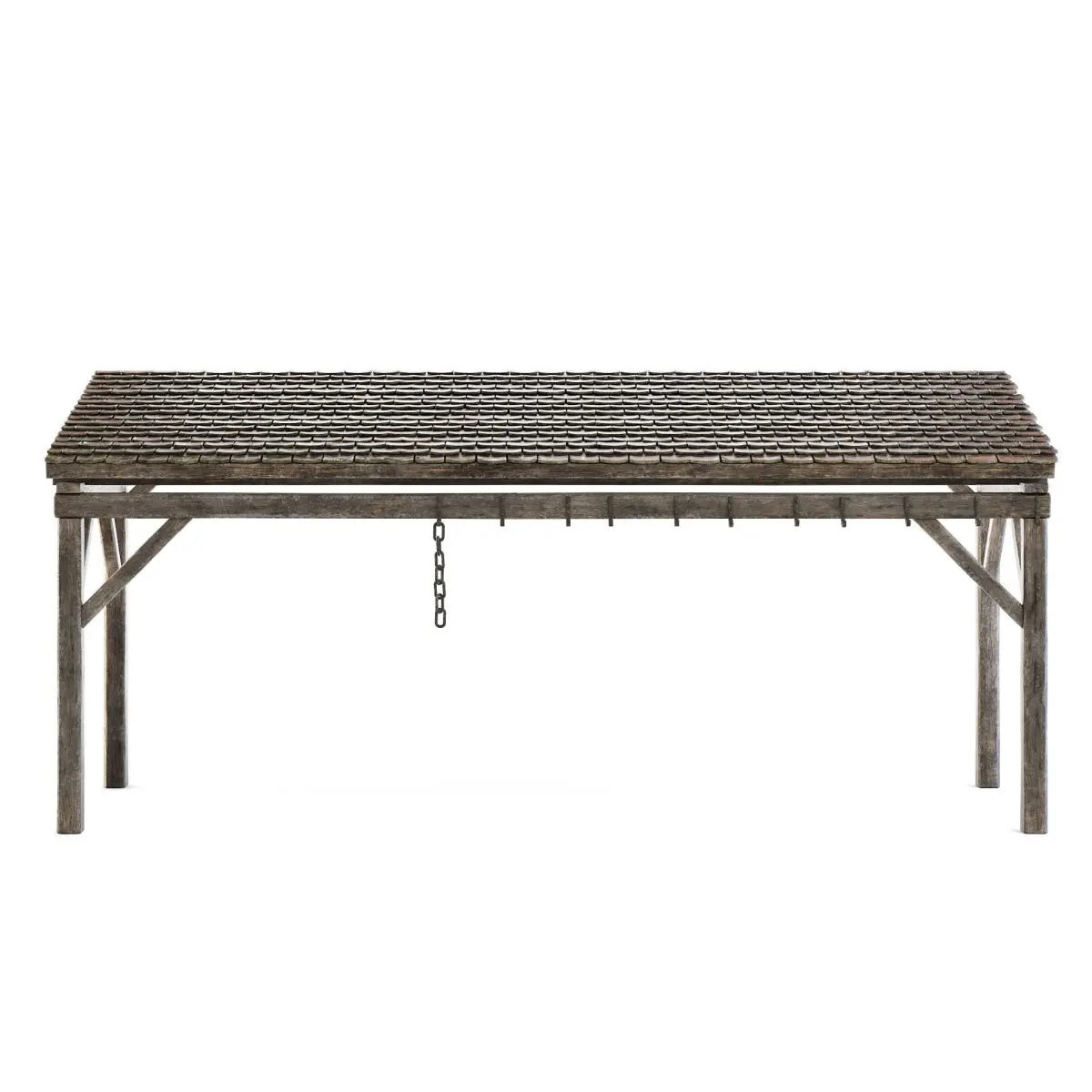 Old forge roof with a wooden frame and old ceramic tiles.