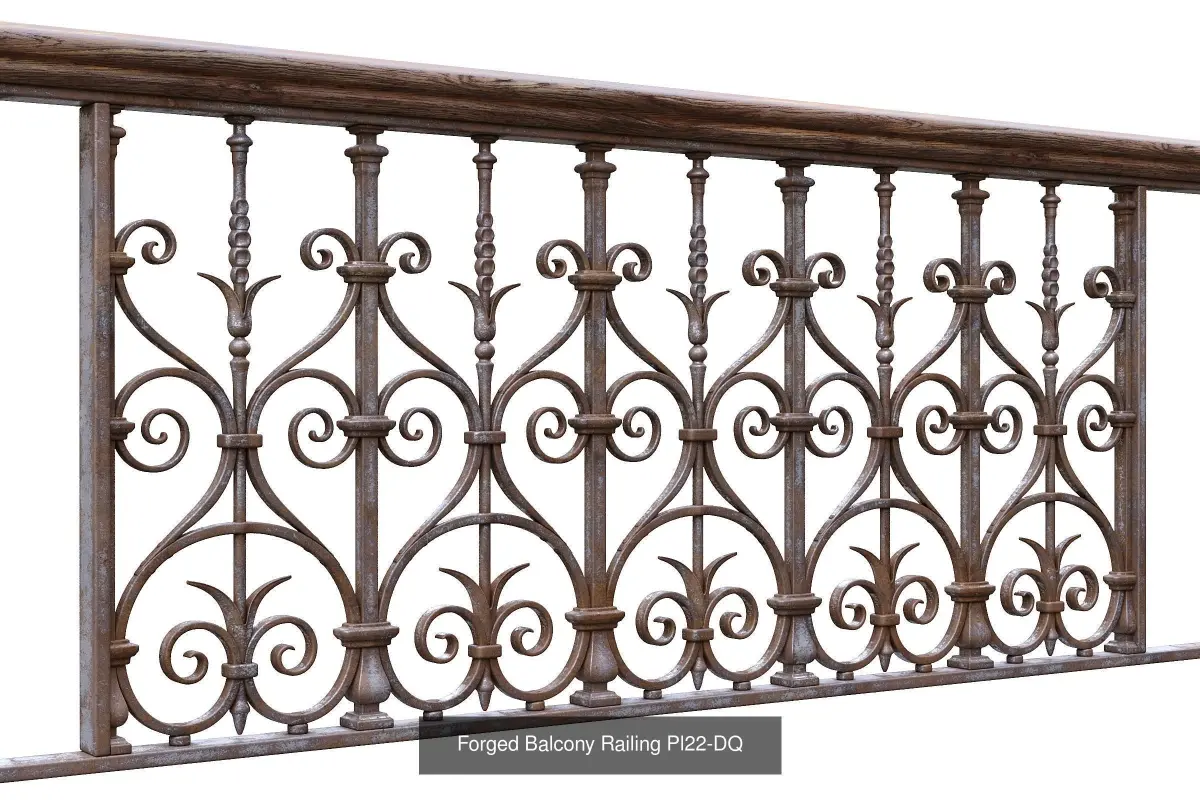 2 Forged Balcony Railings Pl22-DQ & Pl52-EM, Based On The Book Fonte de fer A. Durenne - Maitre De Forges 1870.