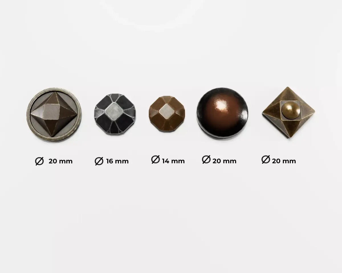 FBX models are optimized low-poly assets (from 288 to 544 polygons). They include only the decorative nail heads, without the nail shaft, making them ideal for real-time applications, props, furniture details, doors, and metal decor elements.